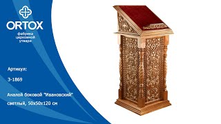 Боковой аналой “Ивановский” выглядит солидно и основательно. С четырех сторон аналой украшен декоративной резьбой, включающей несколько видов традиционных православных крестов. Наклонная поверхность обеспечивает удобство размещения иконы или Евангелия, а изящная, достаточно широкая полочка убережет священные предметы от падения.
