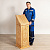 Аналой изготовлен из сосны, украшен резьбой в виде восьмиконечных крестов. Он достаточно массивен, соответственно – стационарен, не сдвинется с места, если его случайно толкнут.