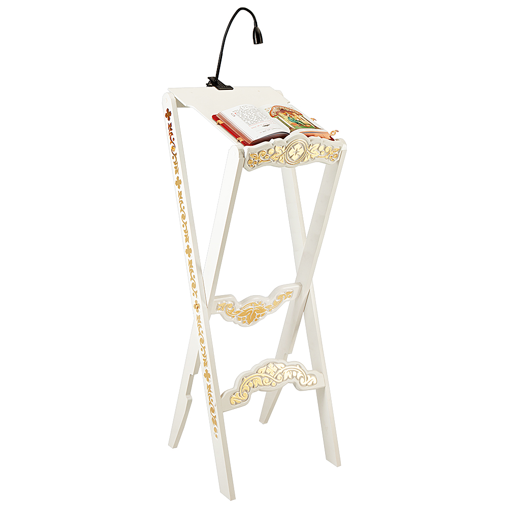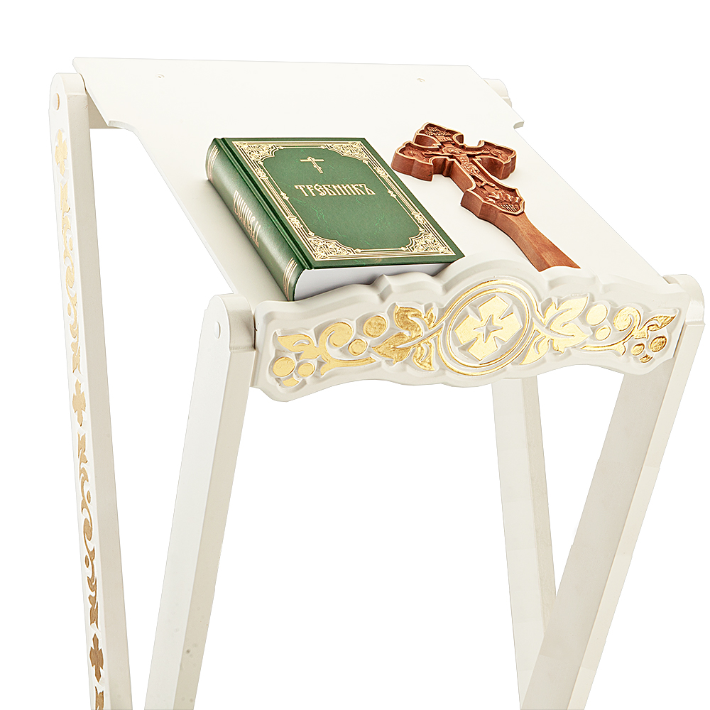 Аналой раскладной "Суздальский" белый с золотом (поталь), высота 123 см