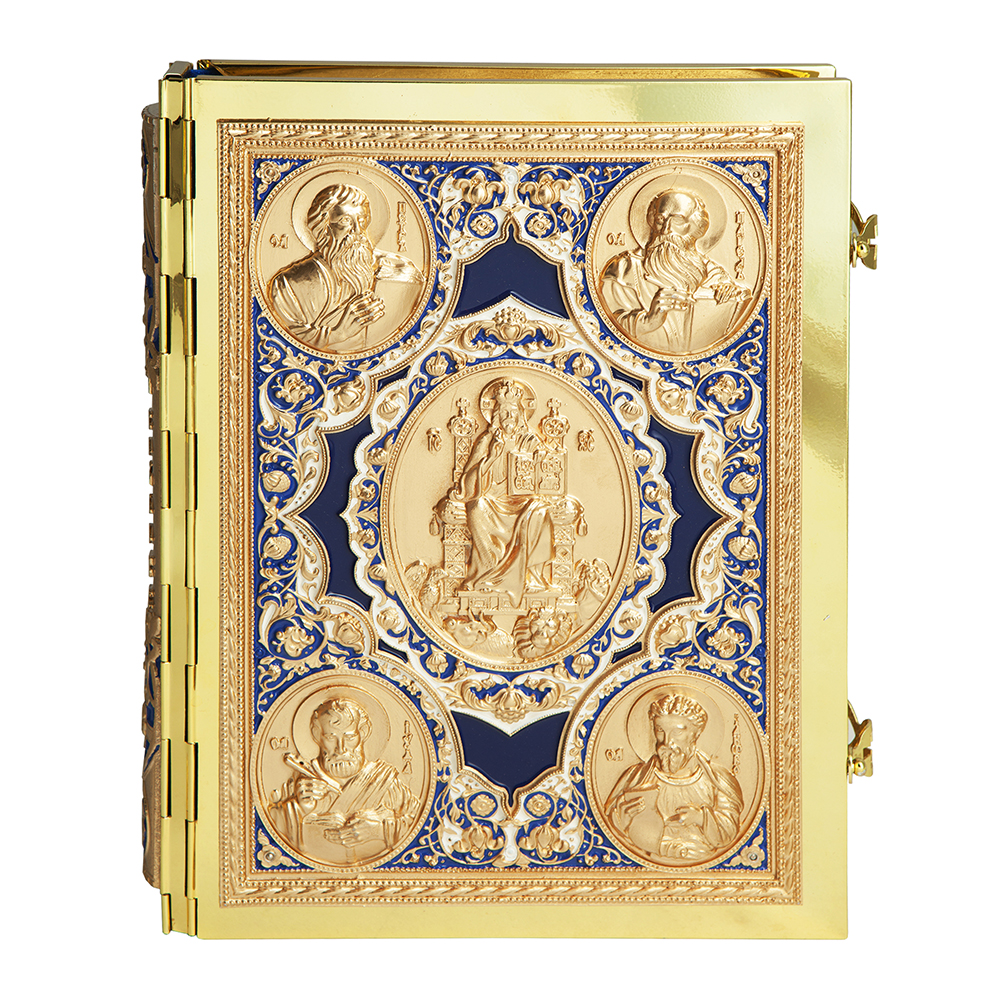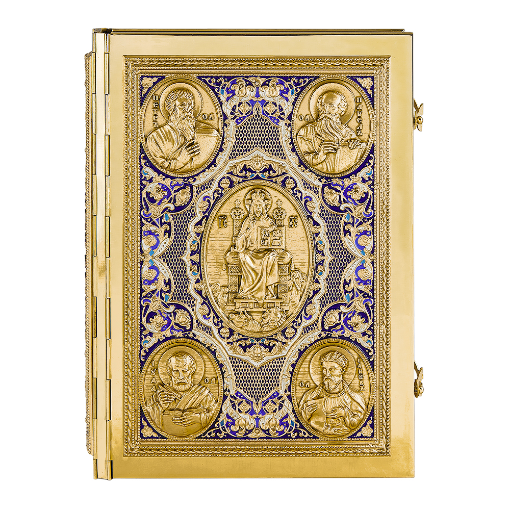 Апостол синий №2, полный оклад "под золото", эмаль, 23х30 см