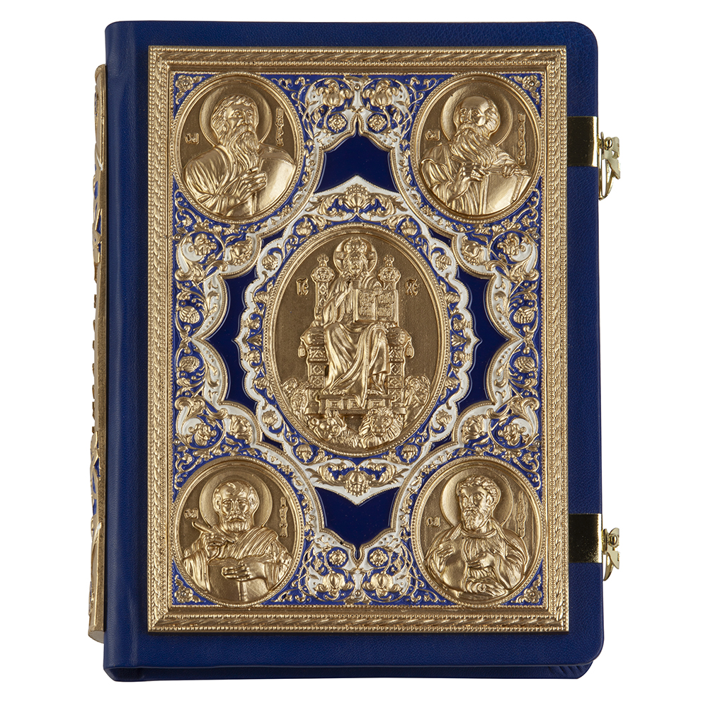 Апостол синий, оклад "под золото", кожа, эмаль, 23х30 см