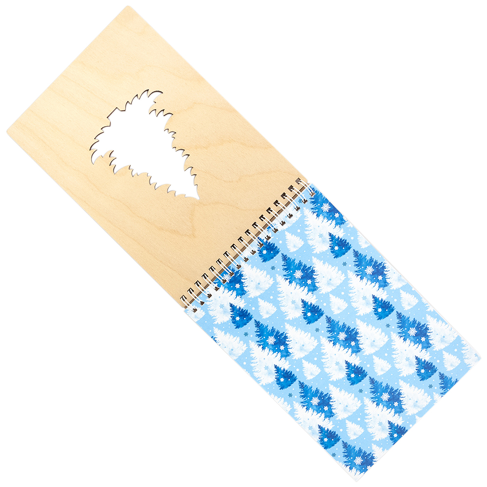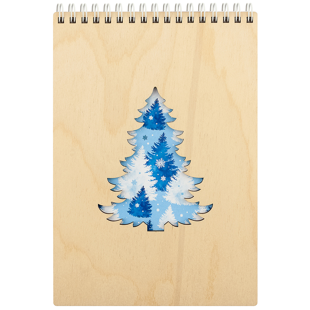 Блокнот с деревянной обложкой "Ель голубая" на пружине.