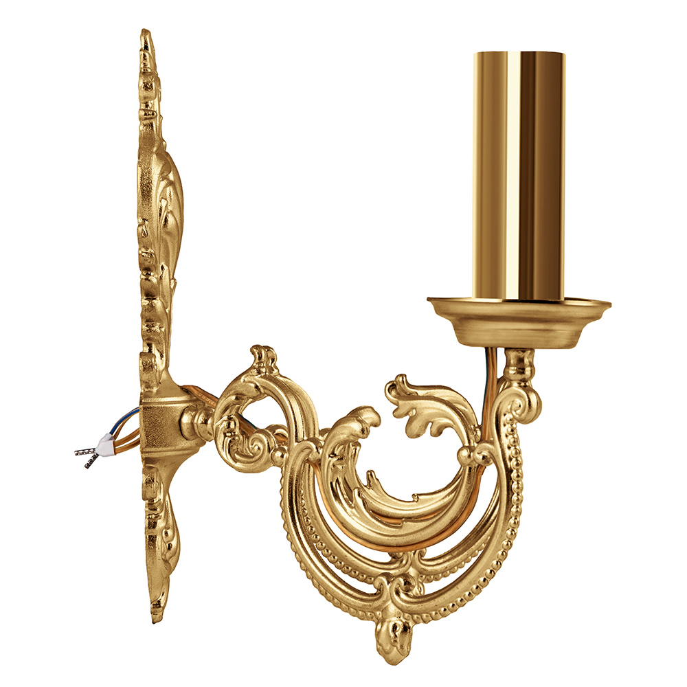 Церковные бра предназначены для использования в качестве местного освещения в алтарной или в основной части храма. Конструкция повторяет форму свечи и надежно удерживается на оригинальном основании. В качестве декора используются накладные элементы – листья, ажурные вставки, фрагменты орнаментов. Церковные бра размещают в местах, требующих дополнительной подсветки – возле жертвенника, по сторонам от алтаря, вокруг наиболее чтимых икон, у панихидного стола и т.д.