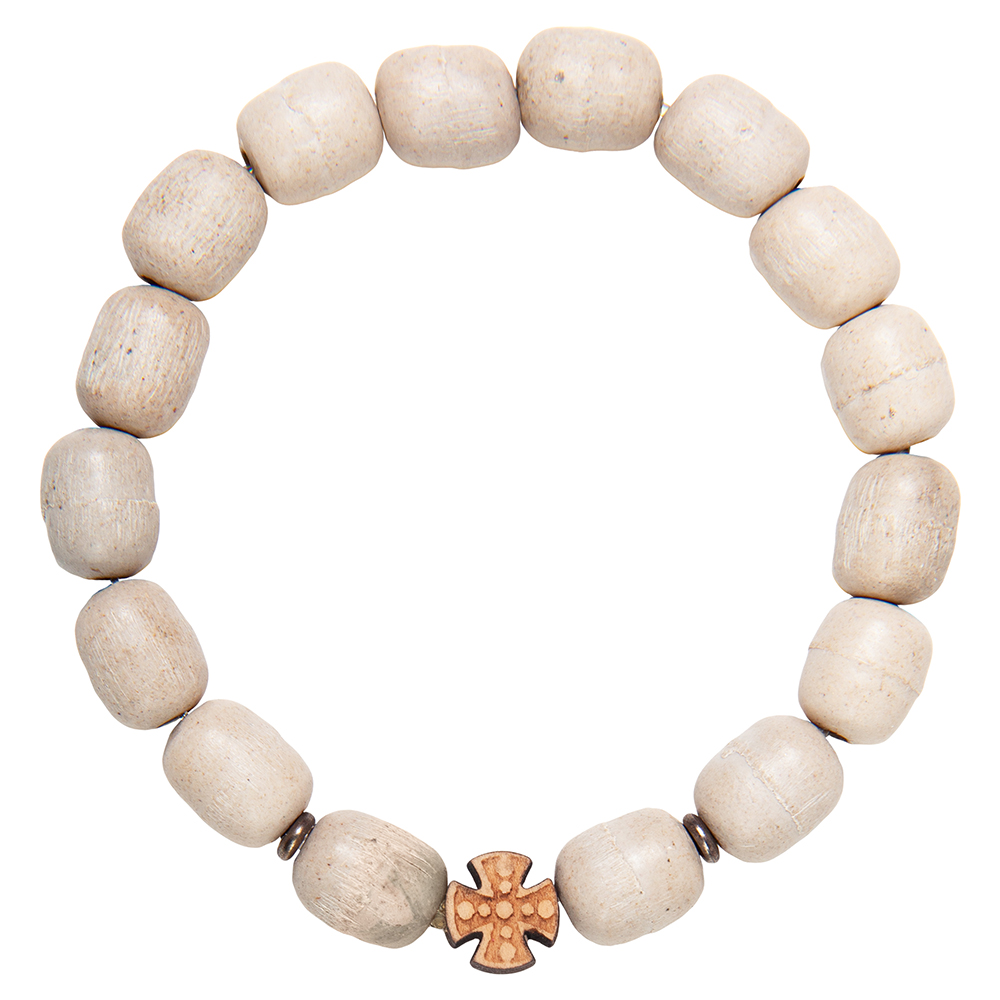 Браслет-четки белого цвета из ладанного дерева с приятным стойким ароматом.