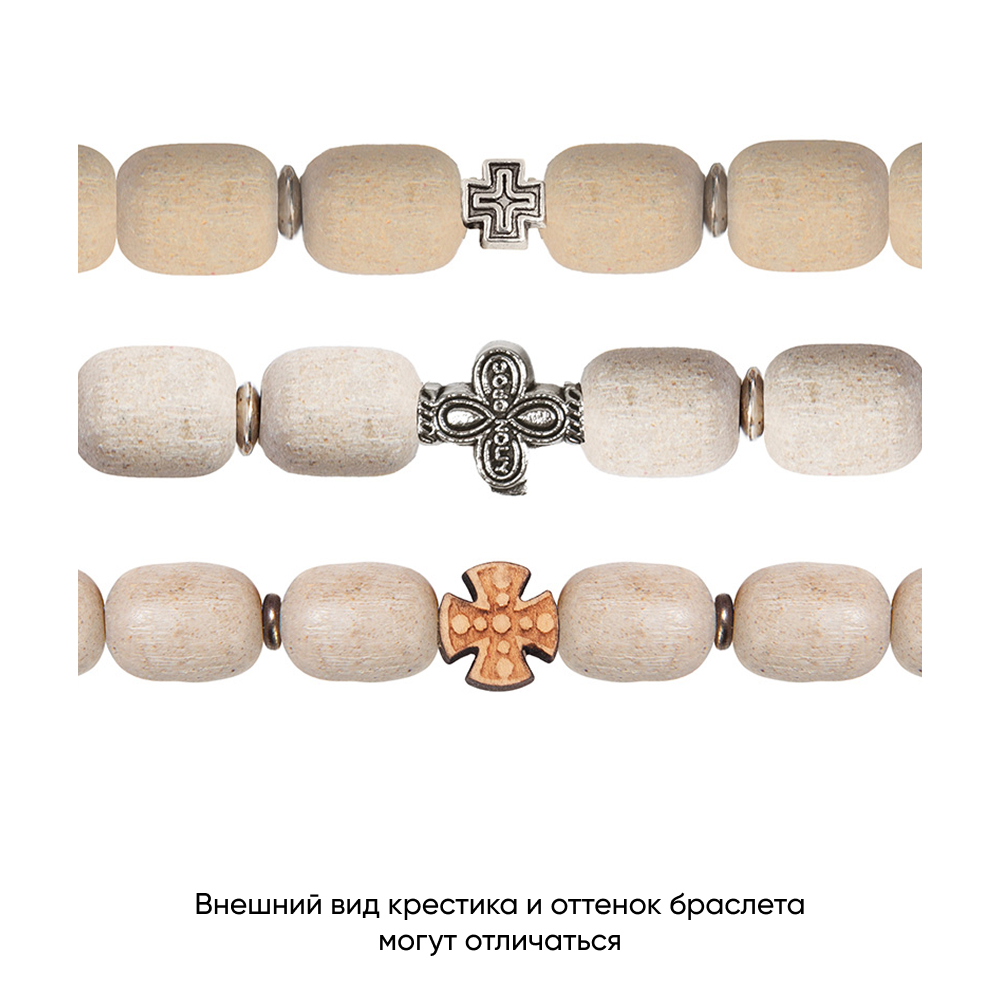 Браслет может быть с деревянным или металлическим крестиком, наличие уточняйте у менеджера при оформлении заказа.