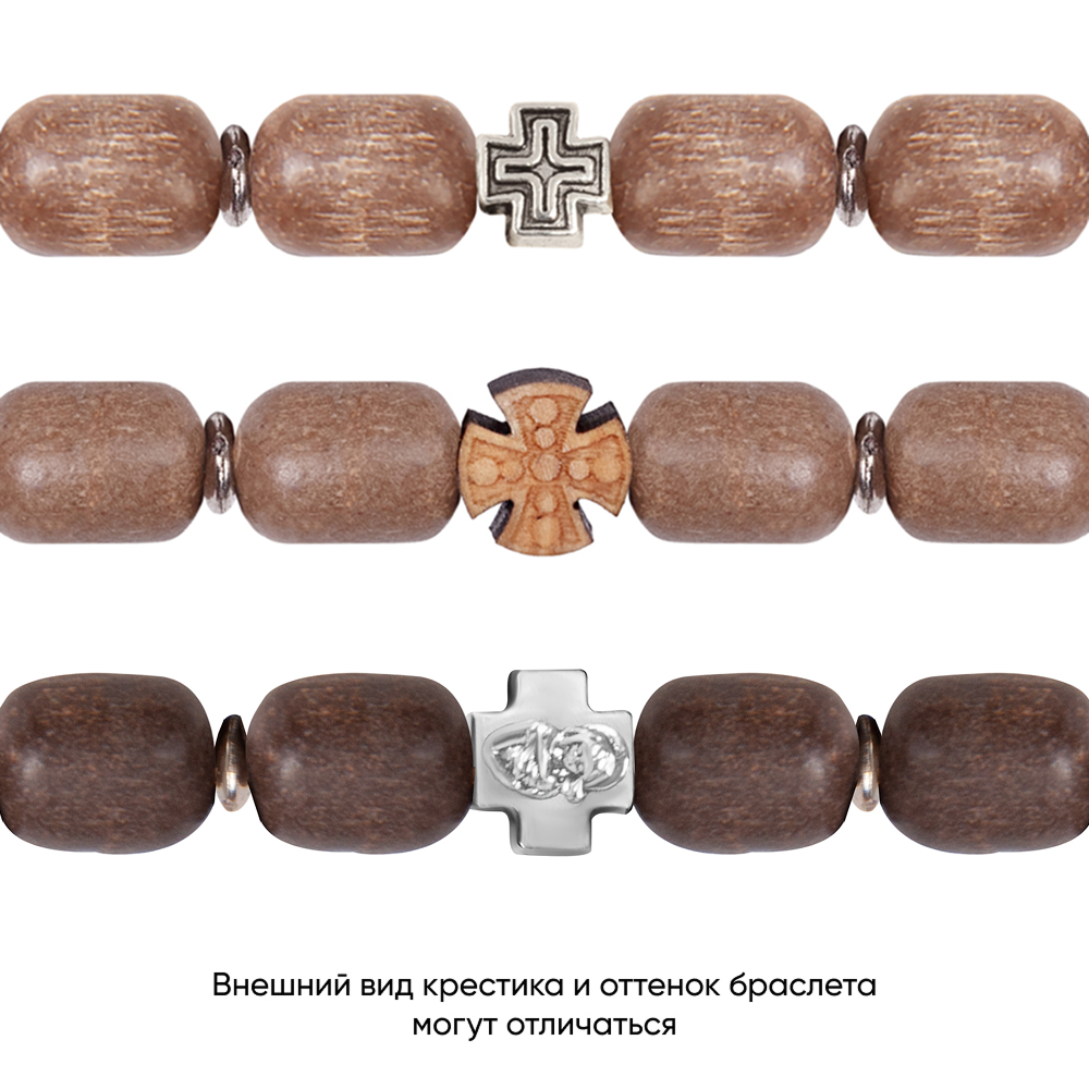 Браслет может быть с деревянным или металлическим крестиком, наличие уточняйте у менеджера при оформлении заказа.