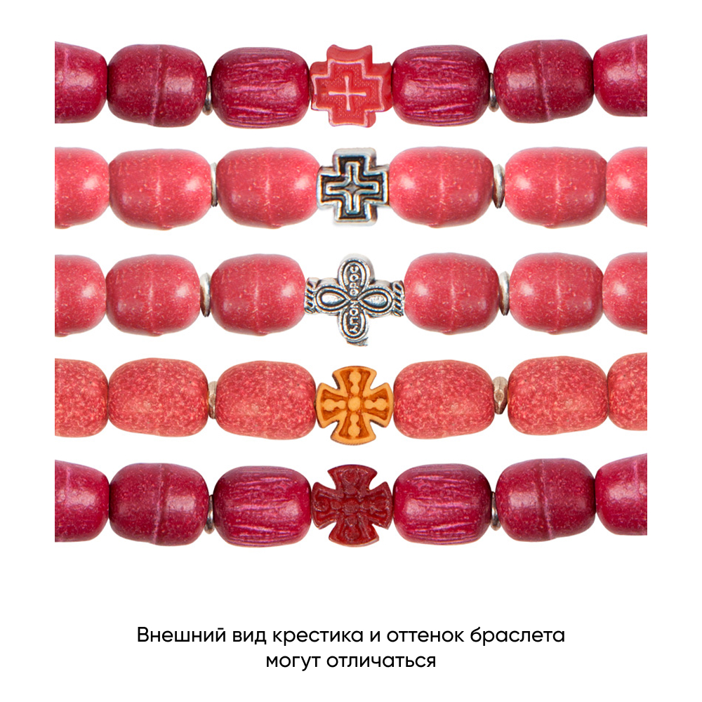 Браслет может быть с деревянным или металлическим крестиком, наличие уточняйте у менеджера при оформлении заказа.