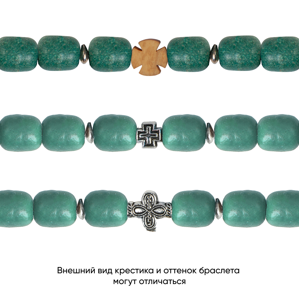 Браслет может быть с деревянным или металлическим крестиком, наличие уточняйте у менеджера при оформлении заказа.