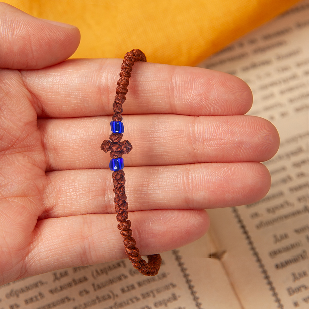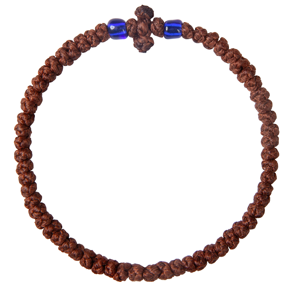 Комбоскини – греческие четки, в переводе – веревка из узлов: комбос - узел, скини – веревка. Браслет связан из прочной цветной нити в виде ряда плотных узелков и украшен бусинами, обрамляющими плетеный равносторонний крест. Согласно традиции комбоскини носится на левой руке и используется при чтении молитвенного правила как четки.