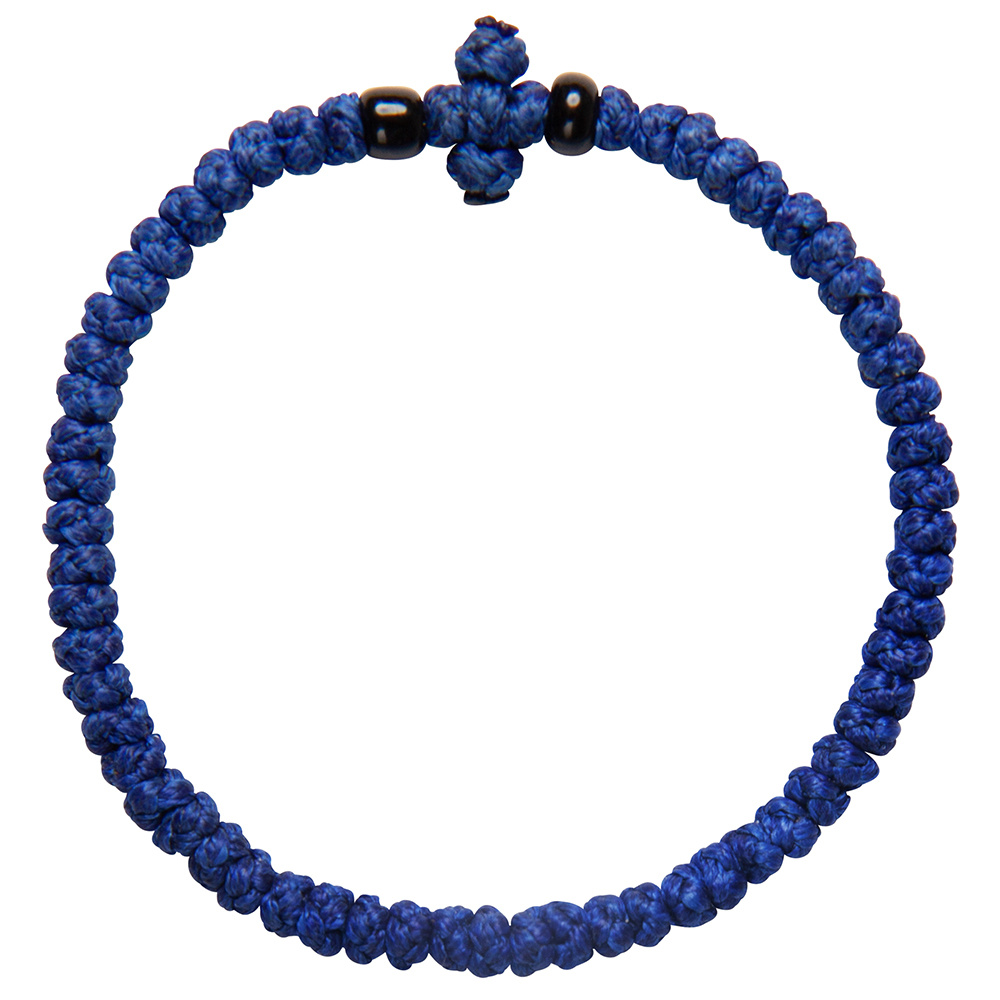 Комбоскини – греческие четки, в переводе – веревка из узлов: комбос - узел, скини – веревка. Браслет связан из прочной цветной нити в виде ряда плотных узелков и украшен бусинами, обрамляющими плетеный равносторонний крест. Согласно традиции комбоскини носится на левой руке и используется при чтении молитвенного правила как четки.