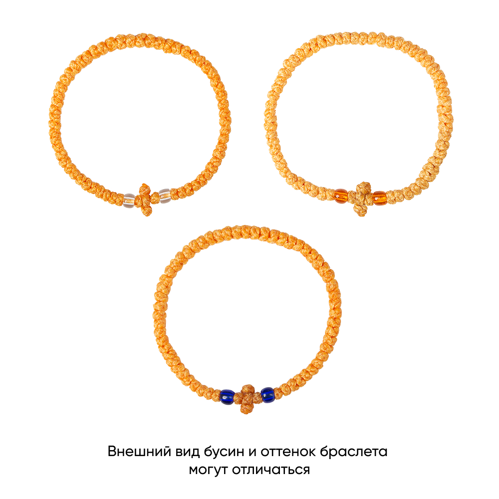 Браслет плетеный (комбоскини) с пластиковыми бусинами, желтый фото 3