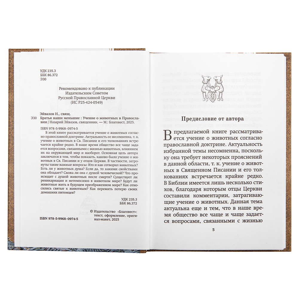 Это издание по-своему уникально – в нем рассматривается учение о животных, изложенное согласно православному вероучению. Автор книги проделал огромную работу и предлагает развернутое учение о животных, начатое в Священном Писании и продолженное в трудах отцов Церкви.