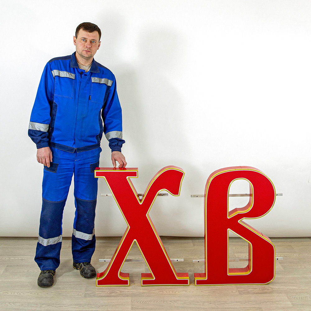 Размеры (ШхВ): буква "Х" - 63х80 см, толщина 10 см; буква "В" - 54х80 см, толщина 10 см.