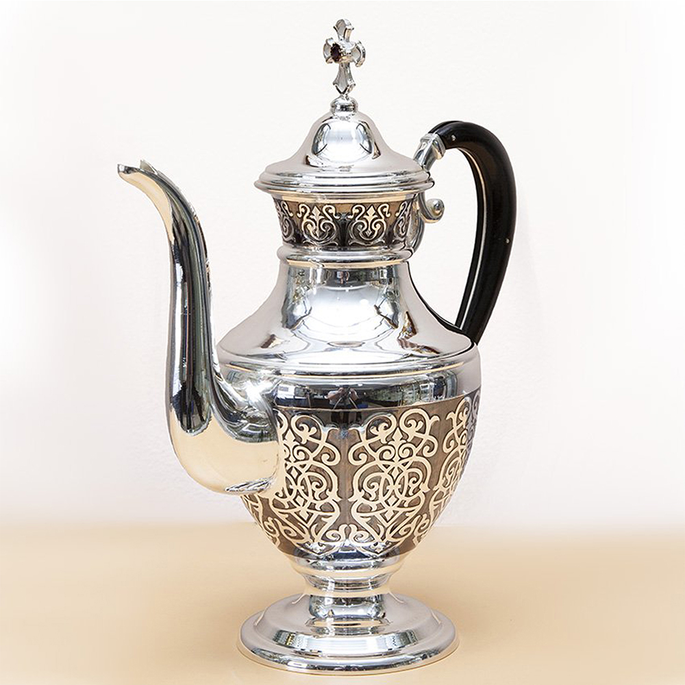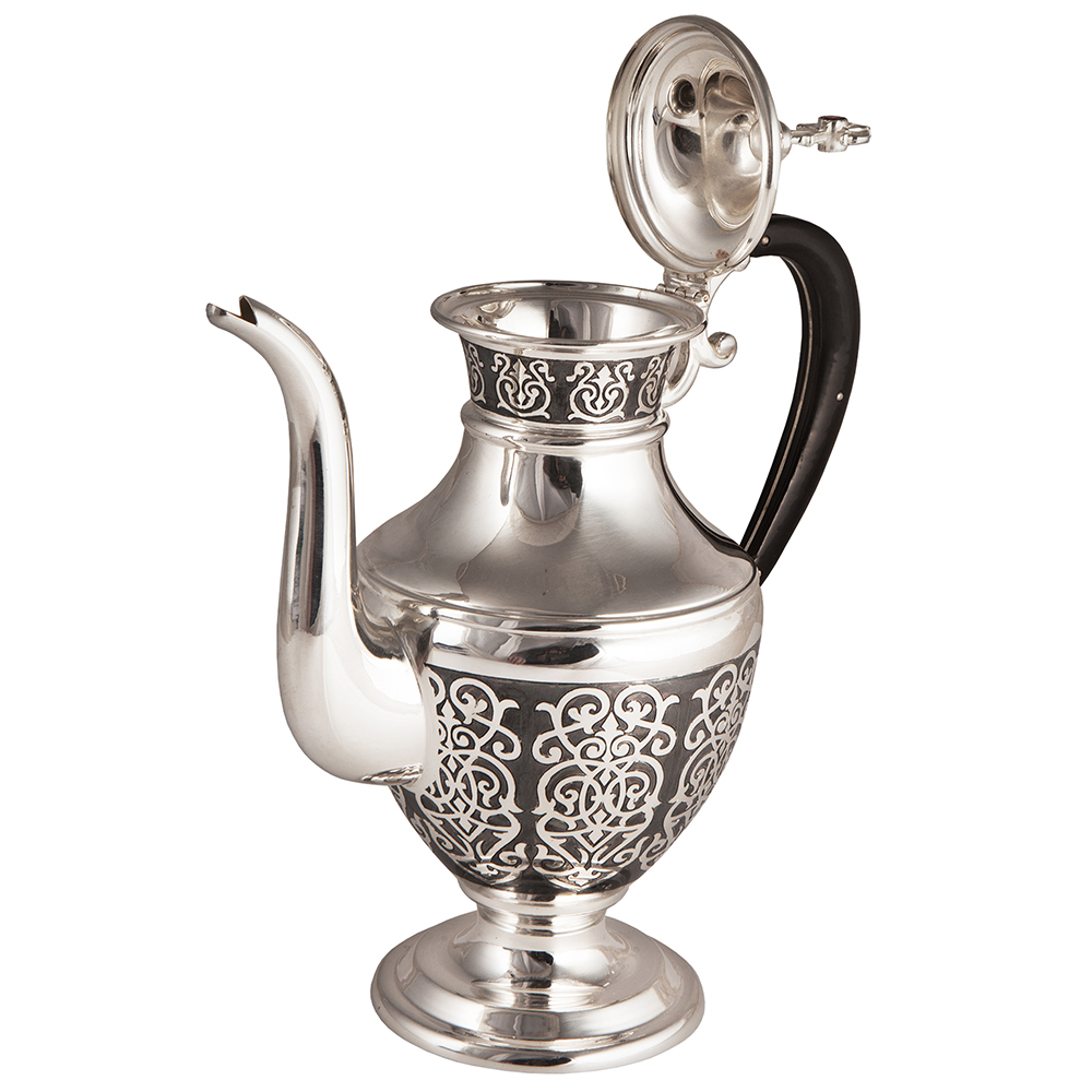 Чайник для теплоты из ювелирного сплава в серебрении, высота 25 см, 0,7 л