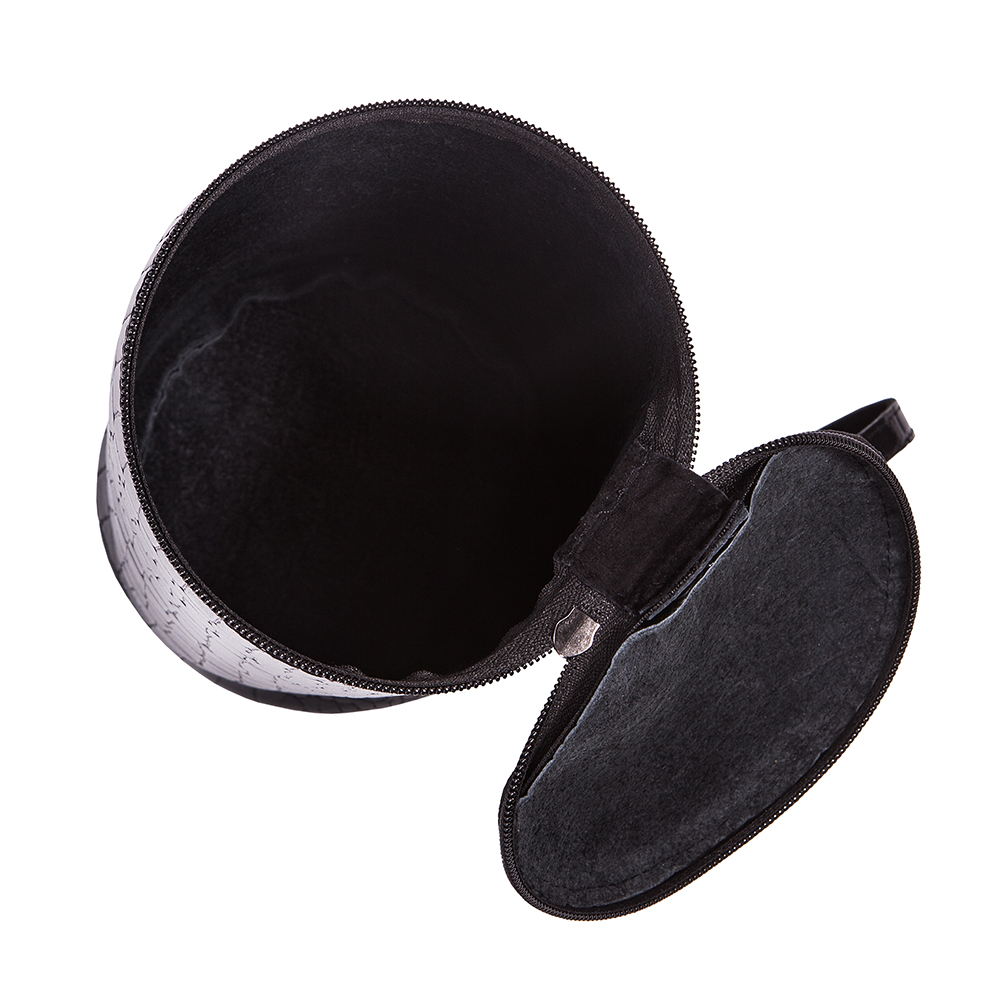 Чехол для кадила из качественной натуральной кожи. Высокая конструкция цилиндрической формы надежно закрывается на круглую крышку с помощью замка-молнии и имеет небольшую ручку для ношения чехла. Тиснение под кожу рептилий придает изделию декоративный вид и превращает его в ценный подарок иерею или диакону.