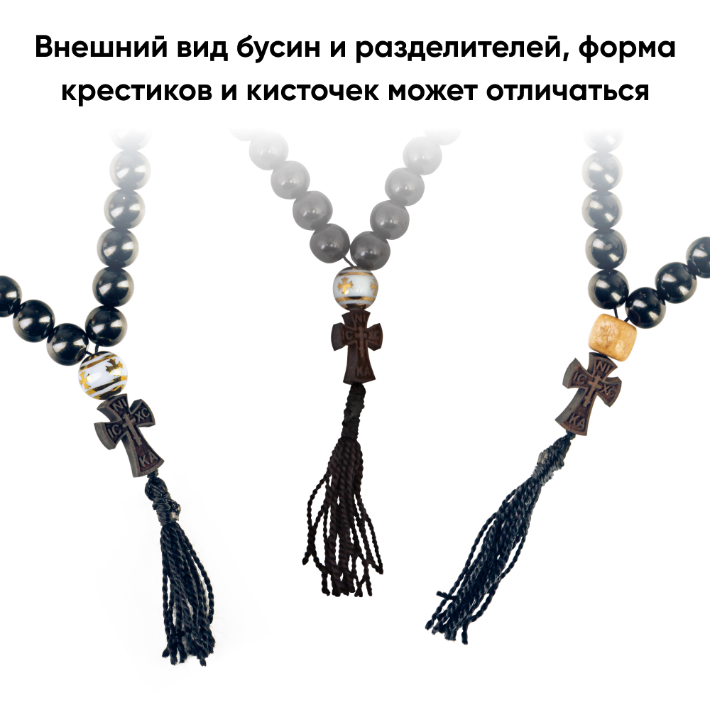 Четки собраны из 30 бусин черного гагата. Благодаря разделителям их можно перебирать пальцами, не путаясь в количестве прочитанных молитв. Благодаря качеству изготовления и строгому внешнему виду четки станут достойным подарком монашествующему или мирскому человеку, стремящемуся к аскетичной жизни.