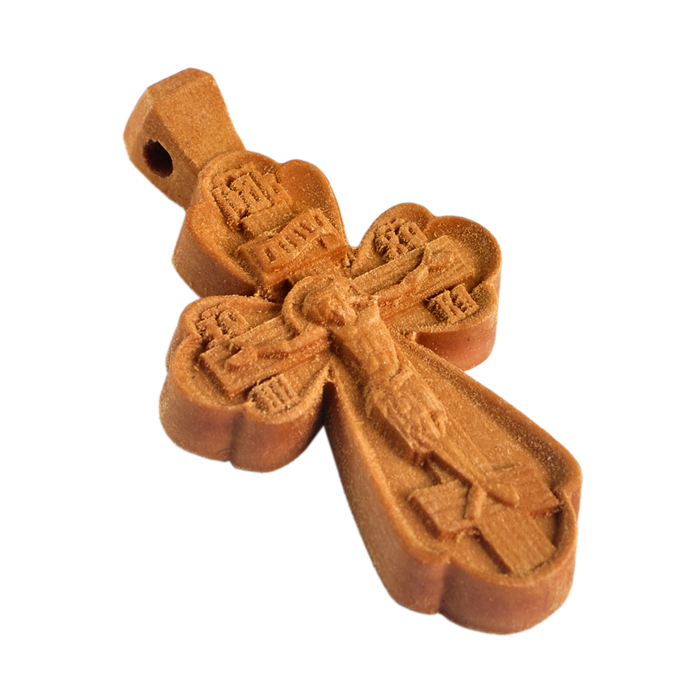Деревянный нательный крестик «Криновидный» с распятием, цвет светлый, высота 5,5 см