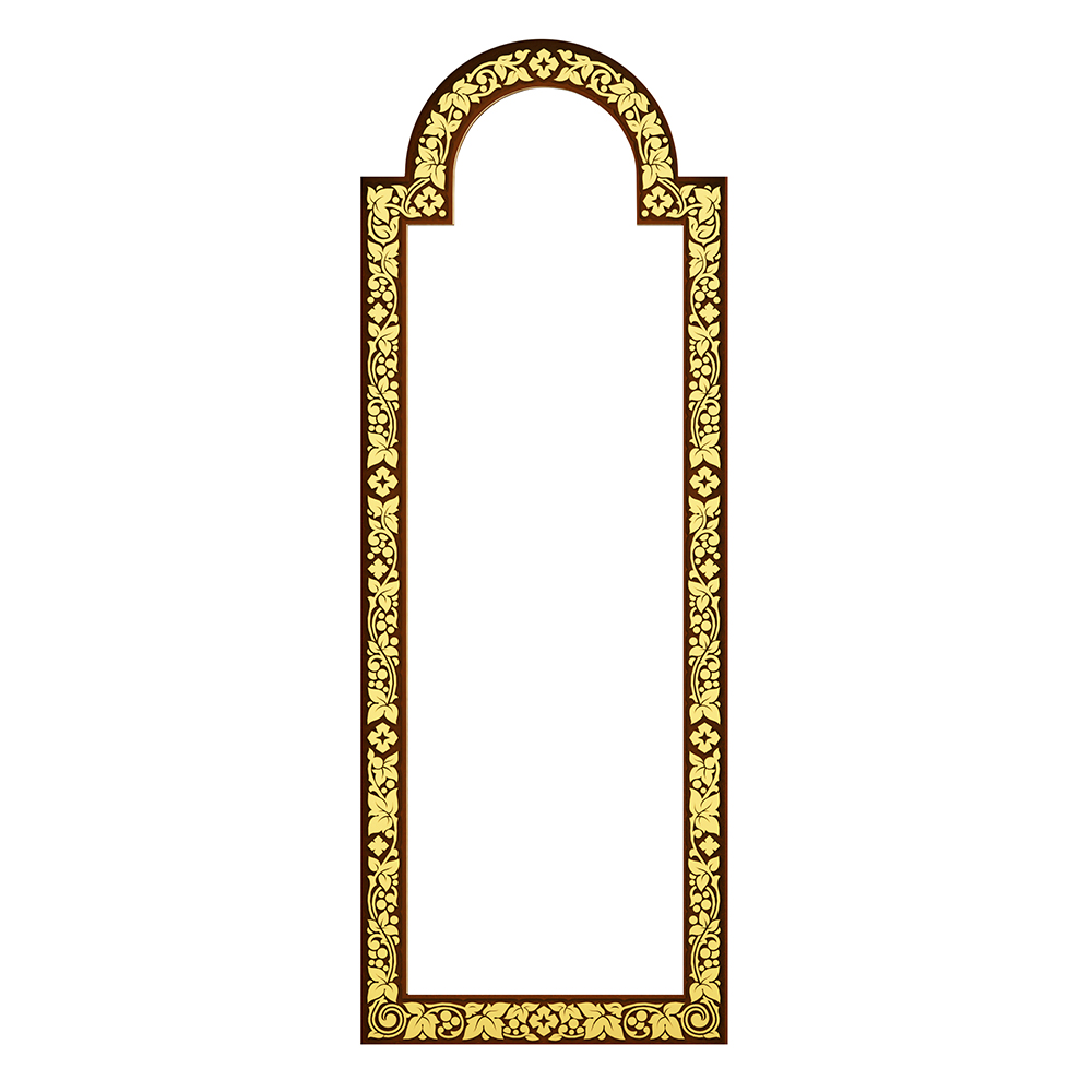 Диаконская дверь к иконостасу «Суздальскиой» серии изготавливается из древесины ясеня. Резьба по контуру нанесена методом низкопрофильной гравировки. Цвет рамы – под кипарис с золотом. Можно заказать одну дверь (для правого (южного) или левого (северного) входа) или комплект из двух изделий. Цена указана за одну дверь.