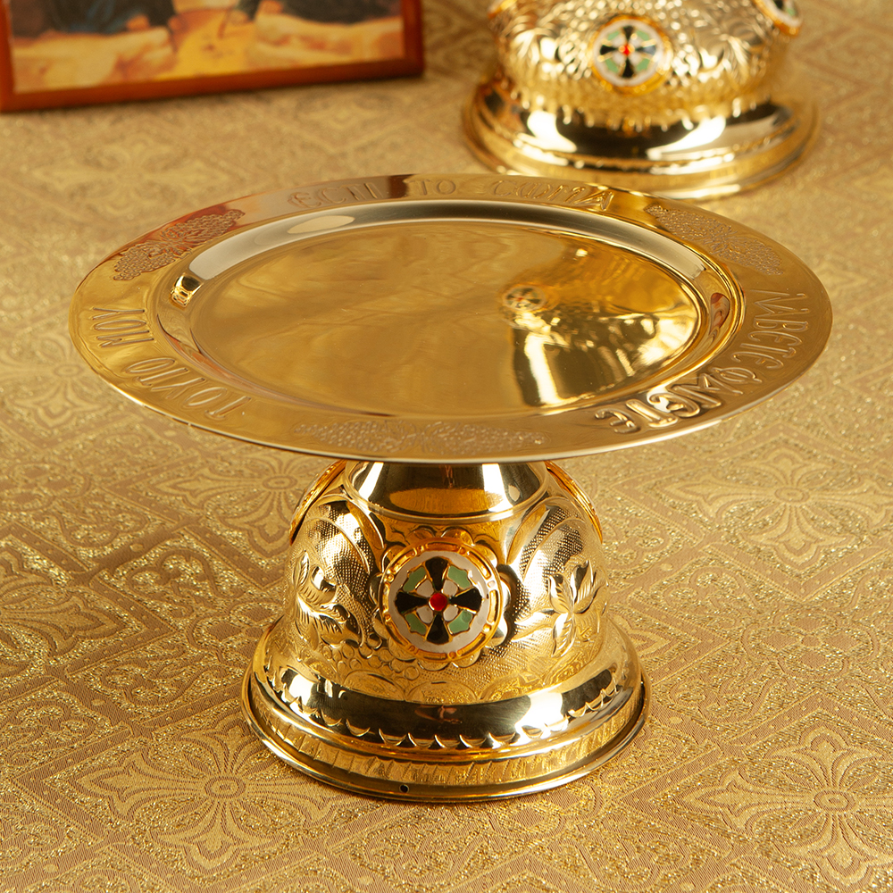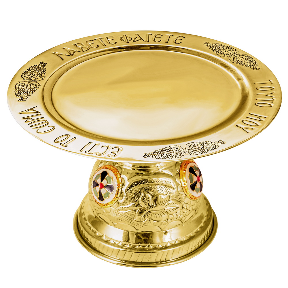 Дискос из латунного сплава с декоративными вставками из цветной эмали.