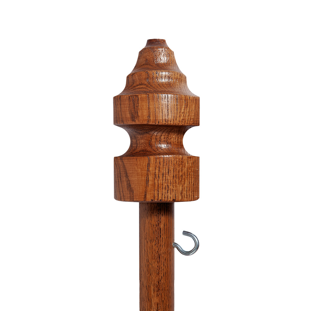 Древко для хоругвей изготовлено из натуральной древесины, для производства некоторых деталей конструкции использован высококачественный металлический сплав. Модель древка отличается прочностью и рассчитана на продолжительную эксплуатацию при условии бережного хранения.
