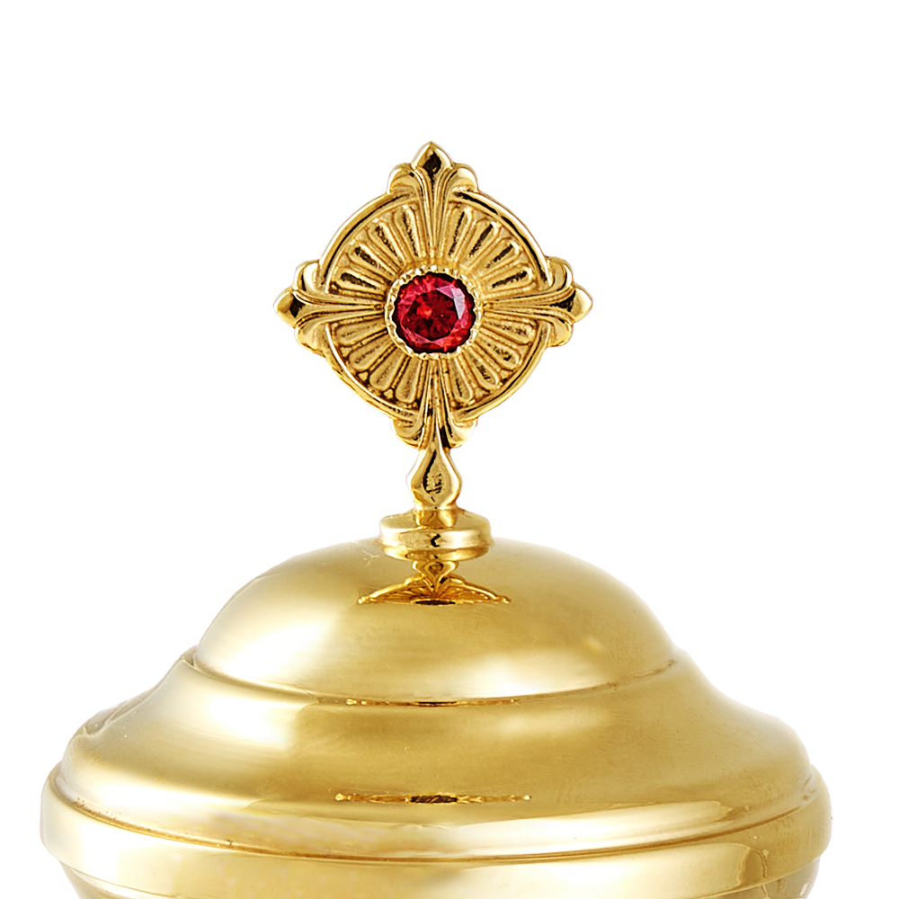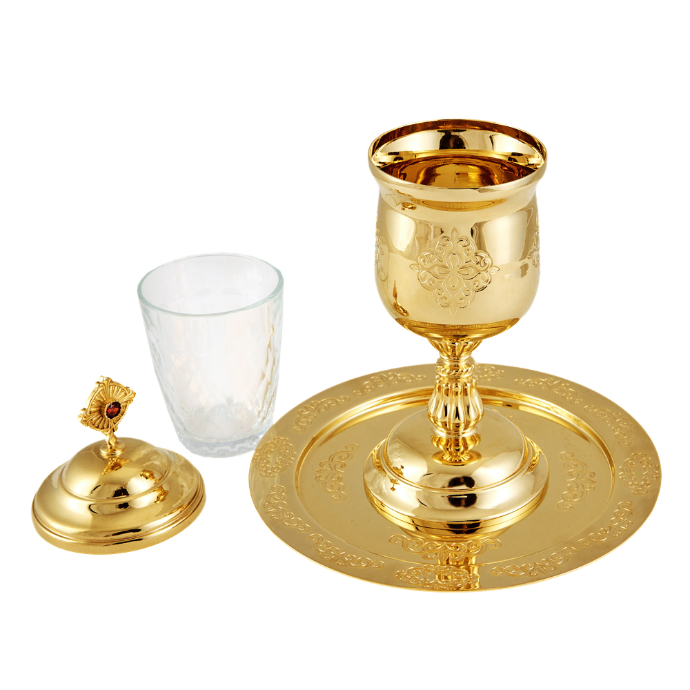 Нарядная елейница изготовлена из специального высококачественного ювелирного сплава, созданного для производства ювелирных изделий. Она покрыта тонким слоем золота при помощи передовой и надежной технологии – гальваника. За такими изделиями очень просто ухаживать, чтобы сохранять их первоначальный вид: просто протирайте елейницу сухой мягкой тканью и, при попадании на нее влаги, сразу насухо вытирайте. Дно подноса елейницы покрыто специальным материалом, который уплотняет его, но при этом не увеличивает вес.