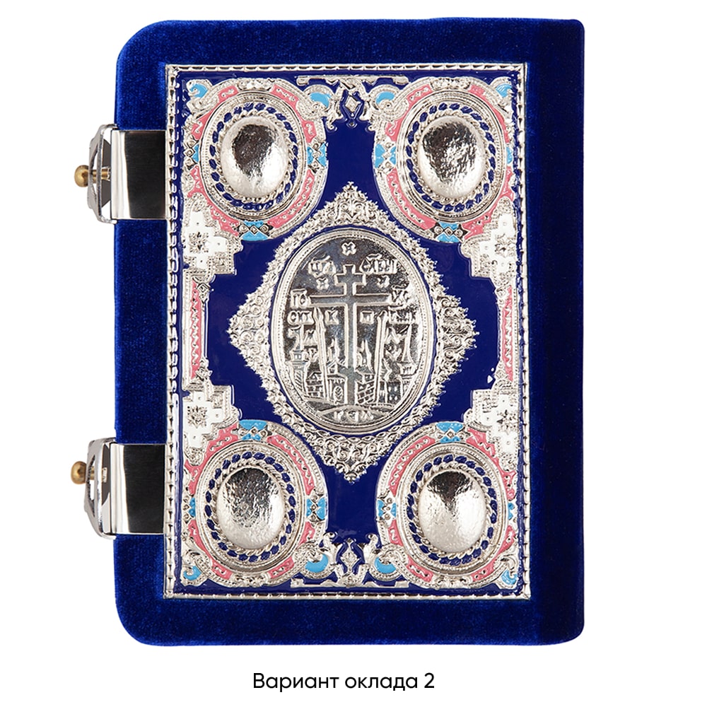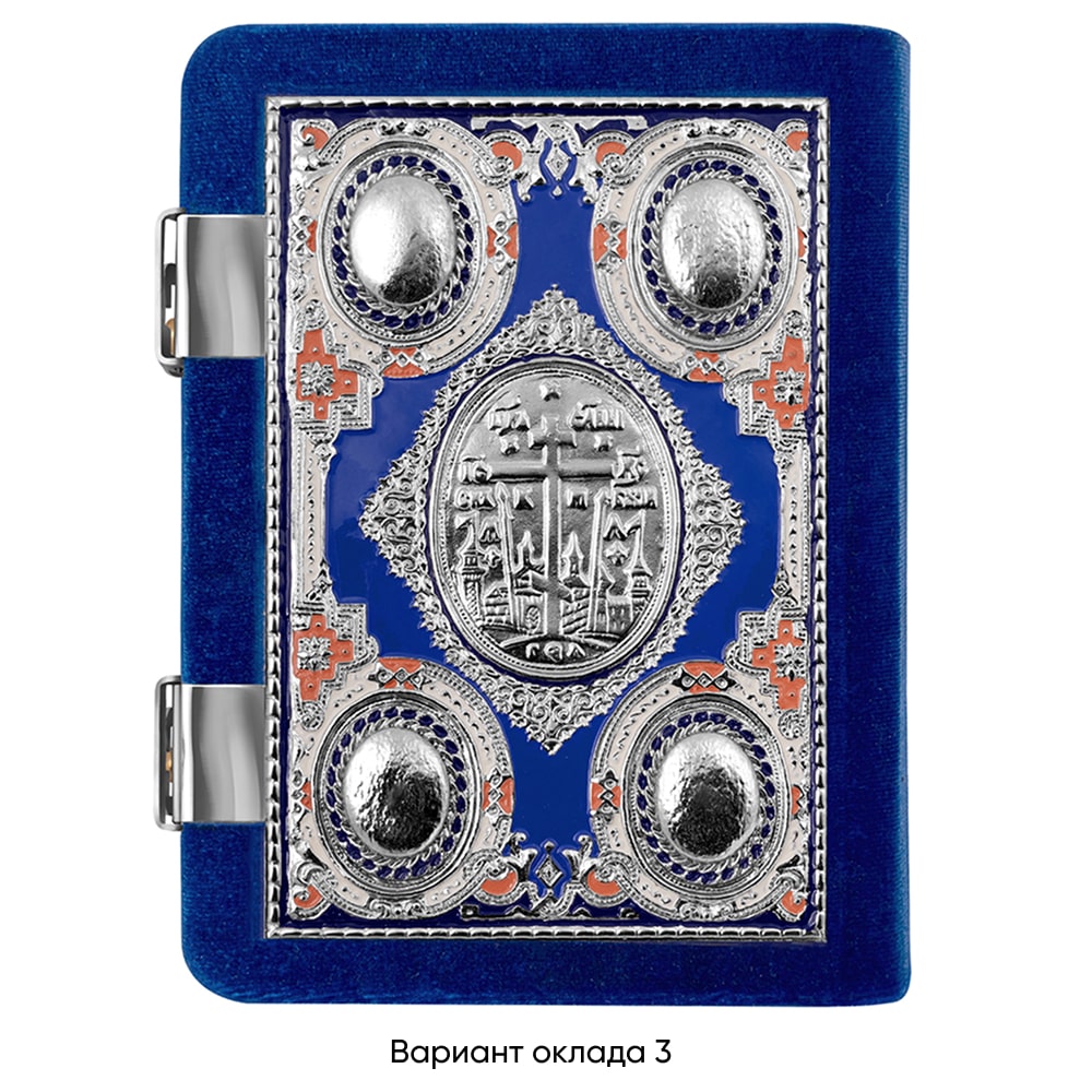 Евангелие требное малое синее, оклад "под серебро", бархат, эмаль, 12х16 см фото 3