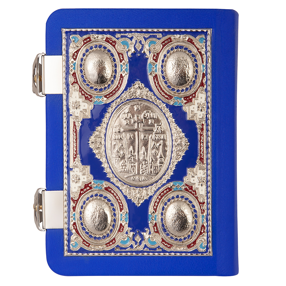 Евангелие требное малое синее, оклад "под серебро", кожа, эмаль, 12х16 см