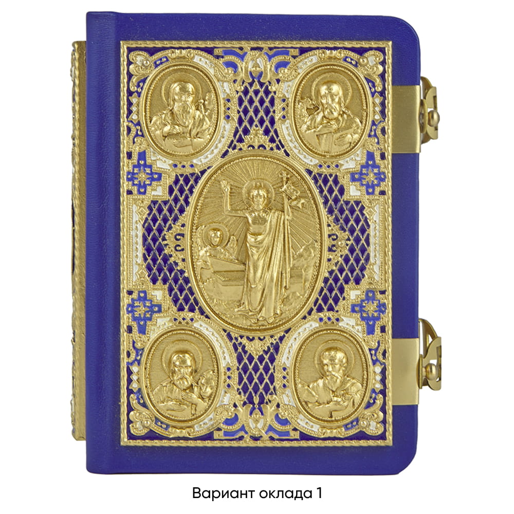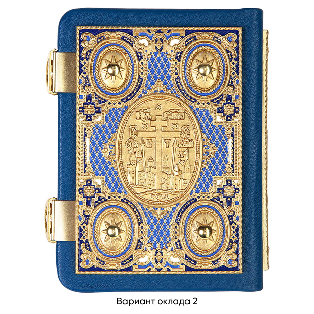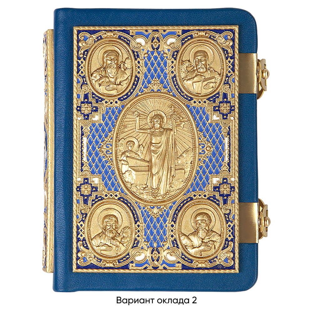 Евангелие требное малое синее, оклад "под золото", кожа, эмаль, 12х16 см