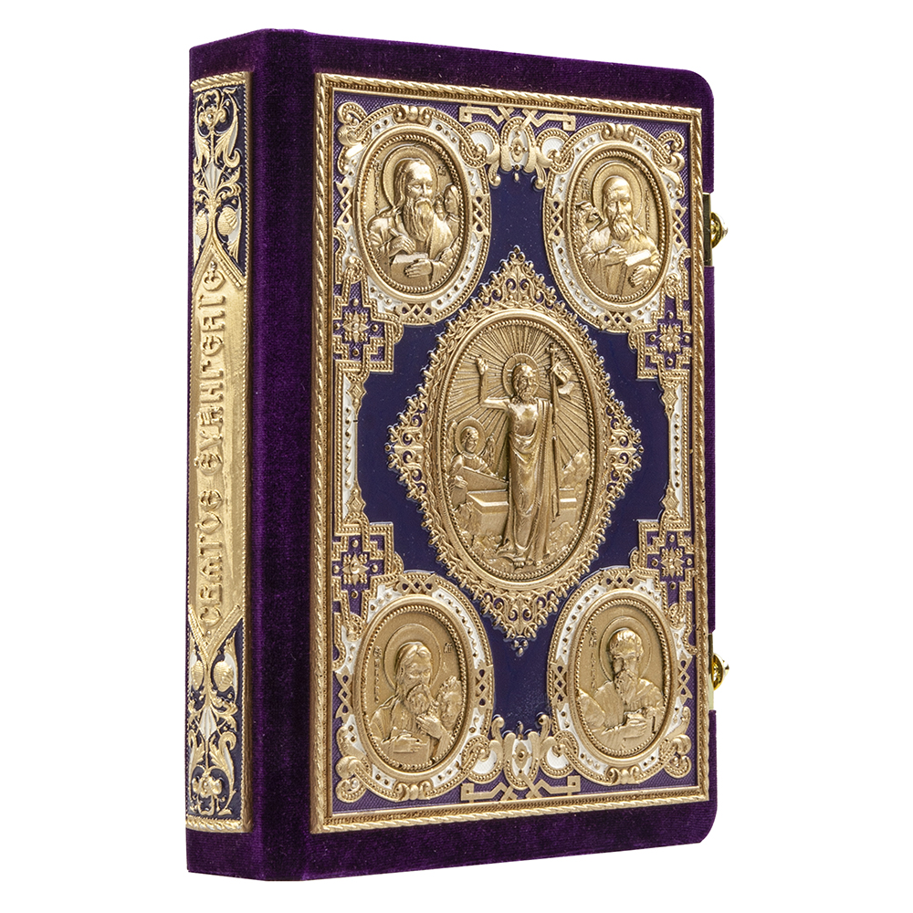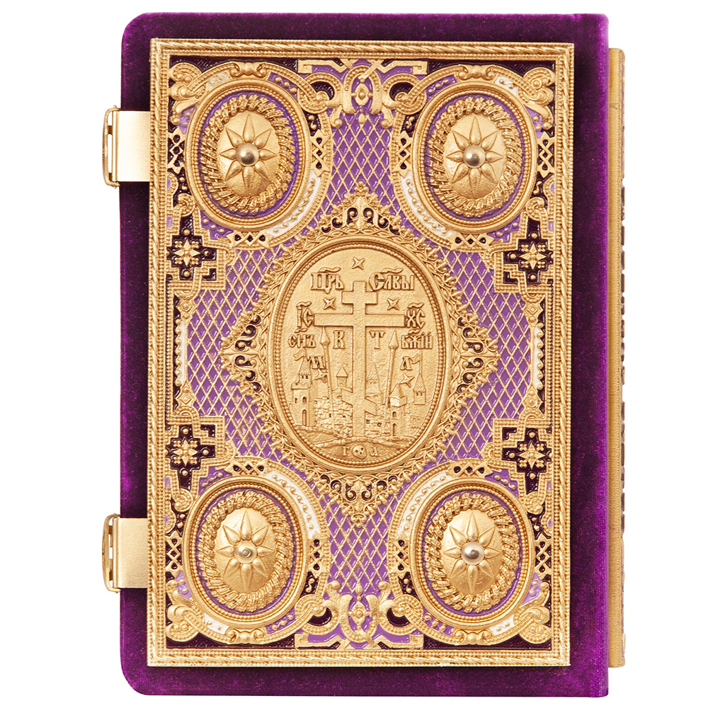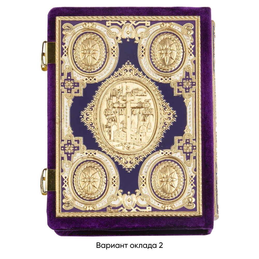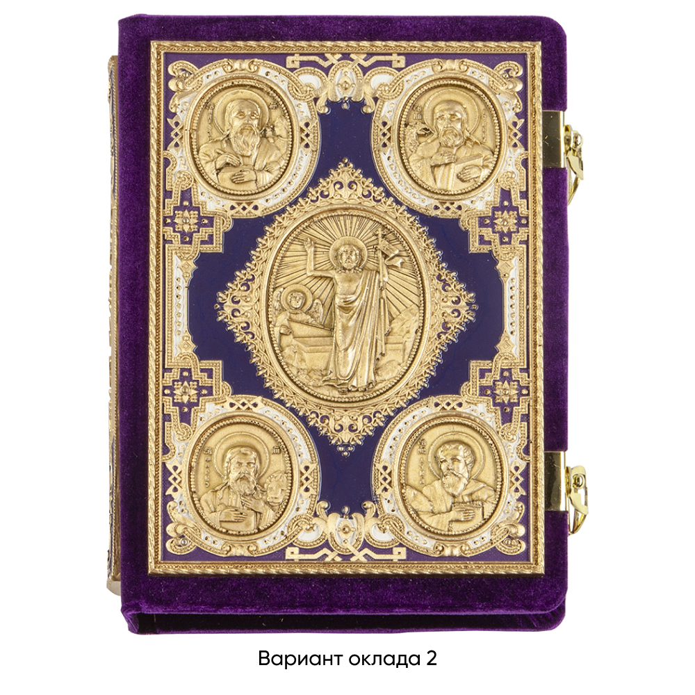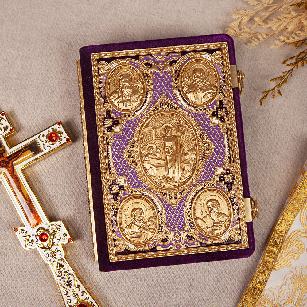 Евангелие требное среднее фиолетовое, оклад "под золото", бархат, эмаль, 17х22 см