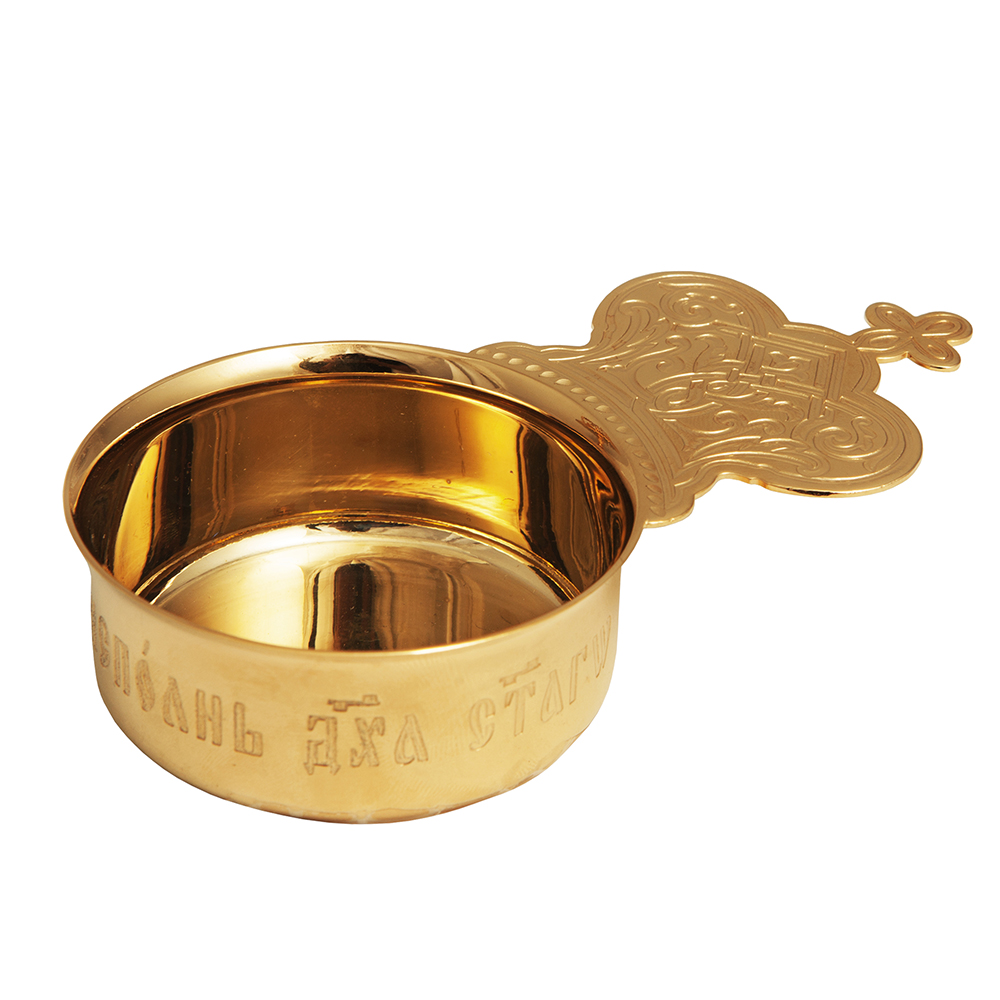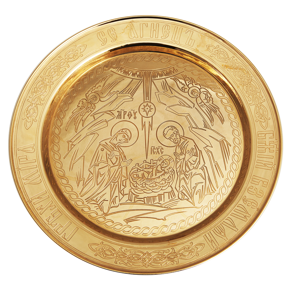 Евхаристический набор из семи предметов – необходимая часть для совершения Таинства Евхаристии во время Божественной Литургии. Представленные в комплекте семь изделий (дискос, звездица, две тарели, основание потира, ковш и лжица) изготовлены из высококачественного ювелирного сплава, а чаша потира - из мельхиора. Покрытие золотом нанесено на металл методом гальванической обработки, что гарантирует стойкость и сохранность цвета и привлекательного блеска. Тщательно отполированная поверхность сплава не требует сложного ухода и легко очищается от загрязнений.