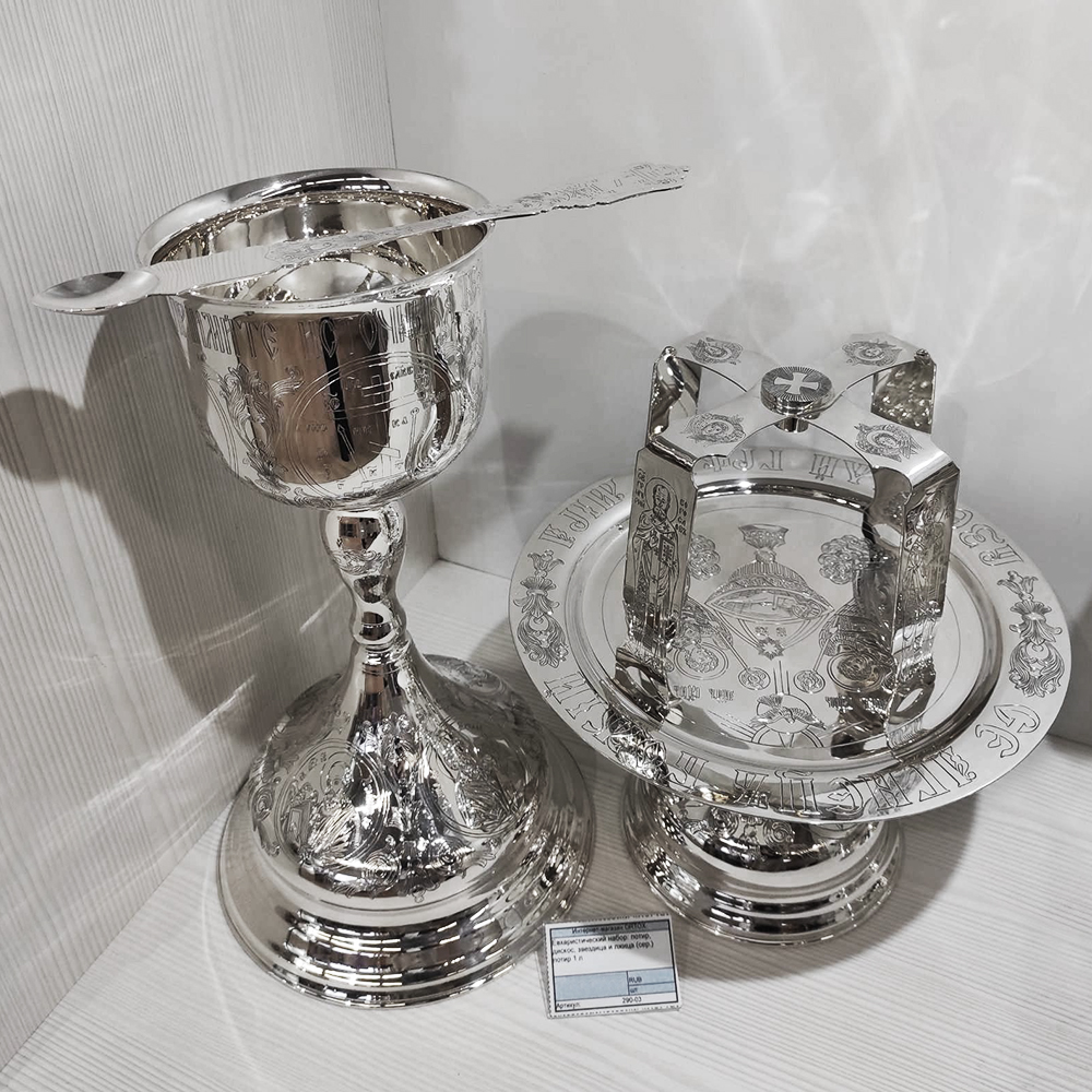 Красивый и строгий серебряный евхаристический набор с ручной гравировкой.