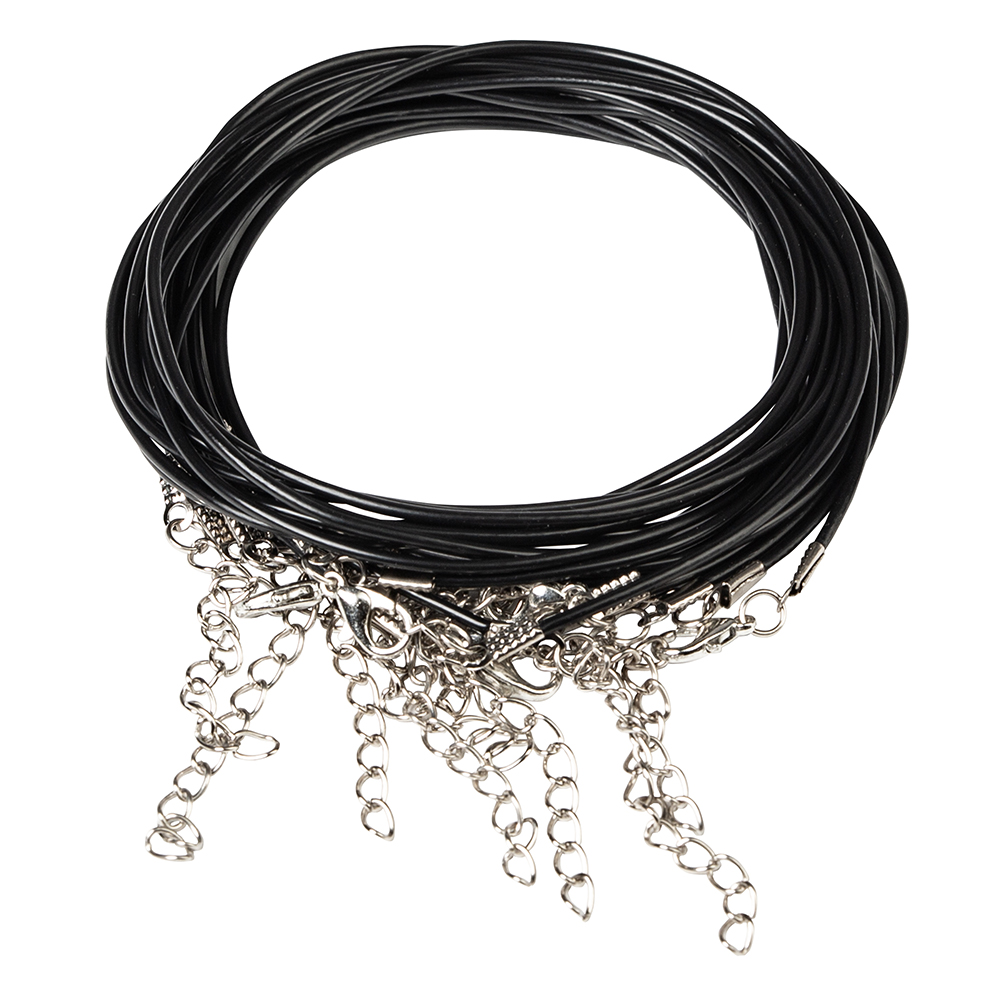 Гайтан черный из искусственного каучука (замок карабин), 45 см (упаковка 10 шт.)