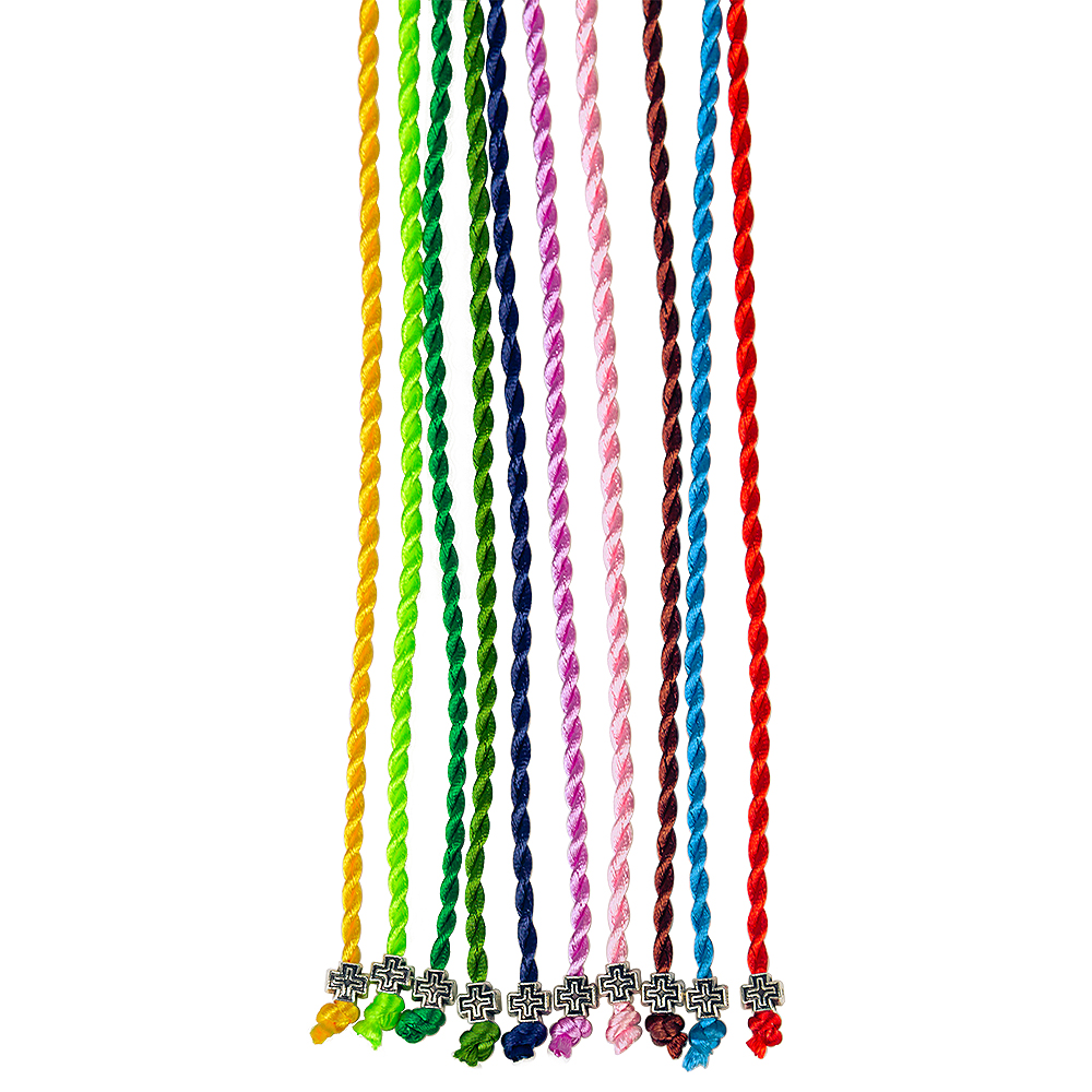 Детский текстильный гайтан - легкий плетеный шнур из прочных нитей с замком-бусиной, цвет микс, 10 штук.