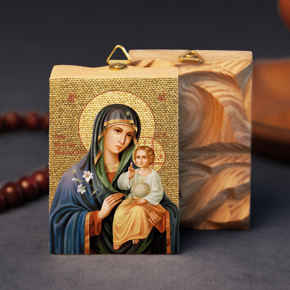 Икона выполнена методом печати на холсте. Основа: натуральная древесина, покрытая льняным маслом.