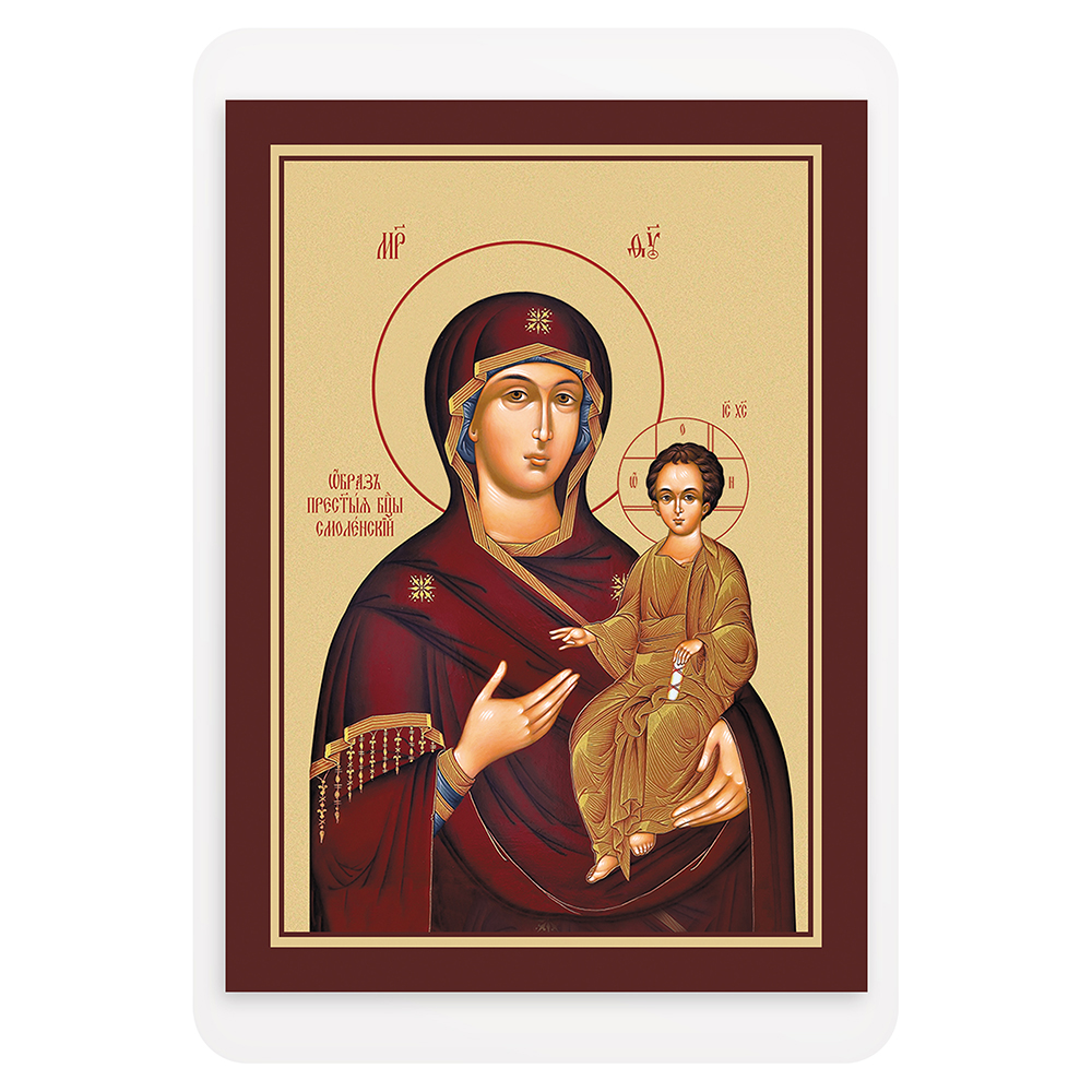 Икона Божией Матери "Смоленская" с тропарем, ламинированная, 6х8 см (упаковка 10 шт.)