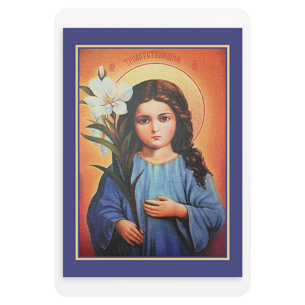 Ламинированная икона с ликами святых. Имеет небольшой размер и легко помещается в нагрудный карман, сумочку, в бумажник, не занимает много места и помогает в любое время обратиться к Богу. На оборотной стороне расположена молитва или тропарь святому. Икона с двух сторон покрыта специальной пленкой, благодаря этому изображение надежно защищено от различных внешних воздействий: влаги, механических повреждений. Такая святыня долговечна, ее удобно носить с собой или брать в дорогу.