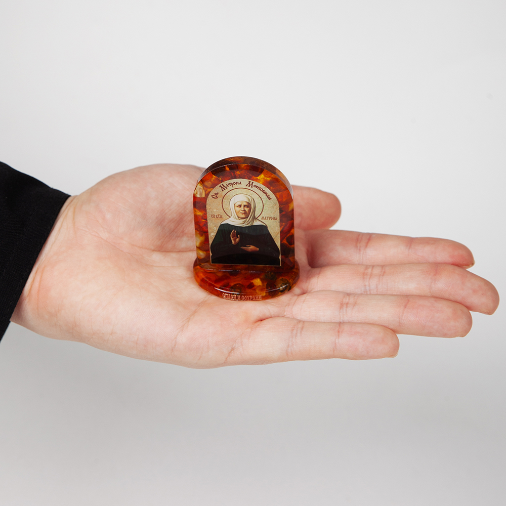 Икона настольная блаженной Матроны Московской, смола с янтарем, 4,5х6 см