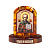 Небольшая настольная икона в оригинальном оформлении украсит рабочий стол или домашний иконостас. Цветное изображение выполнено методом фотопечати и защищено от неблагоприятного внешнего воздействия слоем ювелирной смолы. В качестве рамки с устойчивым основанием используется форма из смеси смолы с янтарем, полупрозрачная структура которой необычно смотрится на солнце и дает приятный отблеск теплого желтого цвета. По краю основы выполнена надпись "Спаси и сохрани". Такая настольная икона станет отличным подарком ко дню тезоименитства или по случаю церковного праздника.