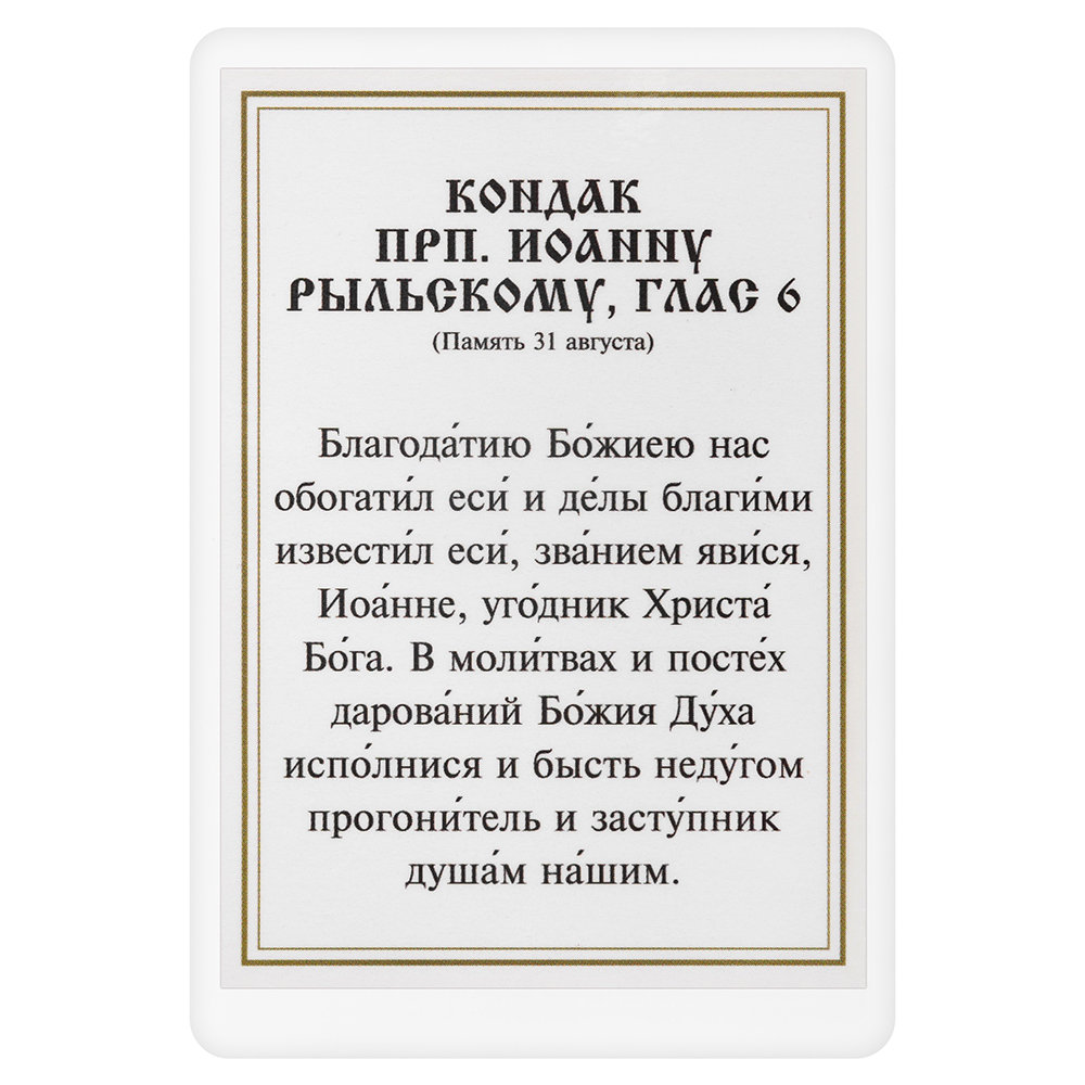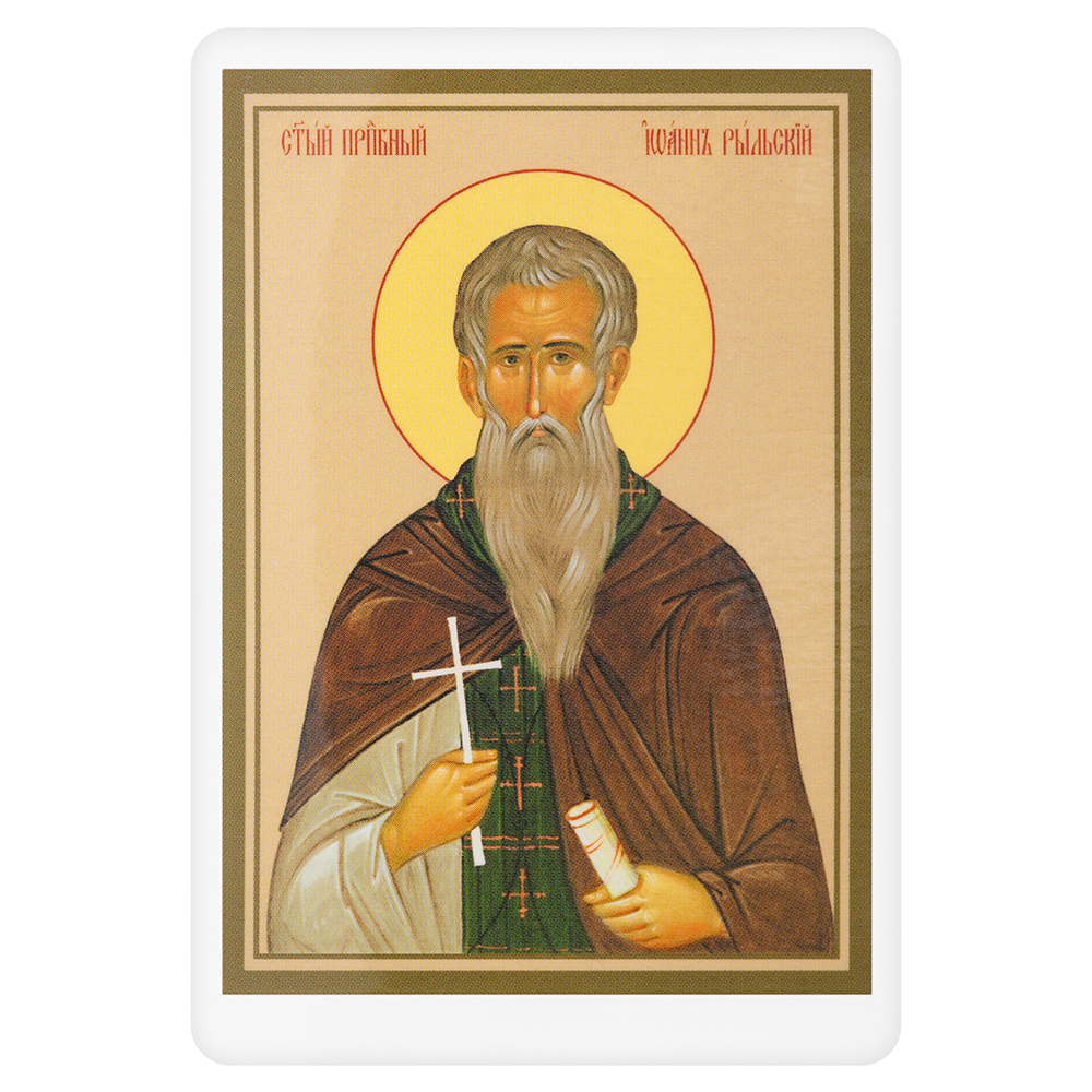 Икона преподобного Иоанна Рыльского с кондаком, ламинированная, 6х8 см (упаковка 10 шт.)