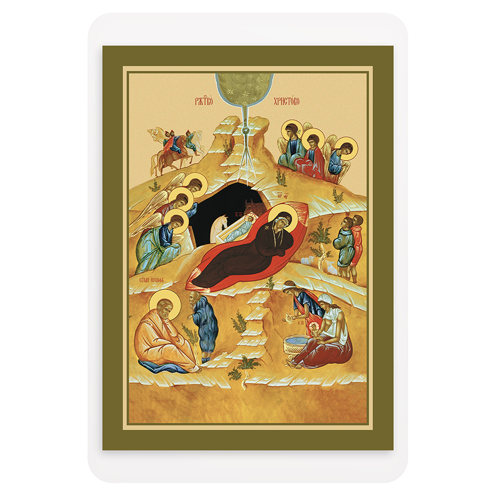 Икона Рождества Христова с тропарем и кондаком, ламинированная, 6х8 см (упаковка 10 шт.)