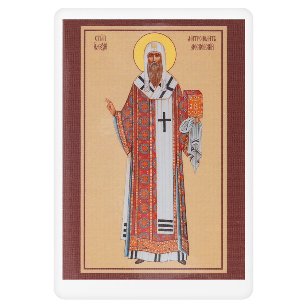 Ламинированная икона святителя Алексия, митрополита Московского с тропарем, 10 штук.