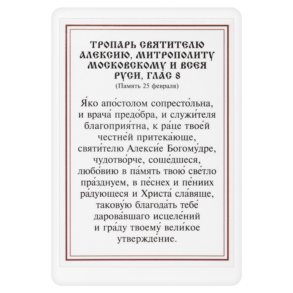 Икона святителя Алексия, митрополита Московского с тропарем, ламинированная, 6х8 см (упаковка 10 шт.)