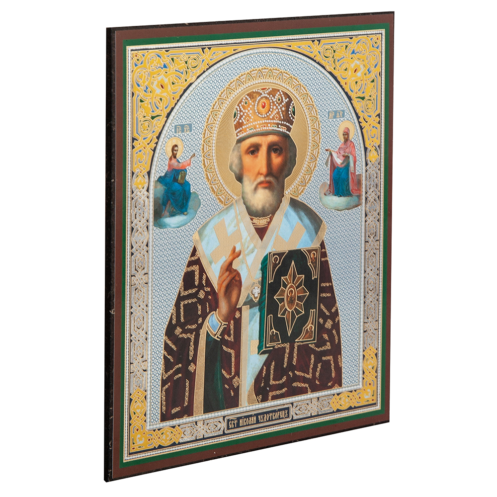 Икона святителя Николая Чудотворца на оргалите с молитвой.