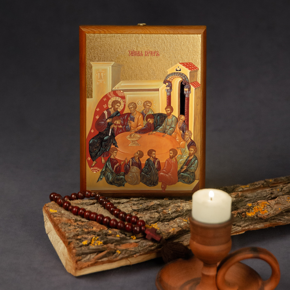 Икона "Тайная Вечеря" на деревянной основе, цвет "кипарис", на холсте с золочением