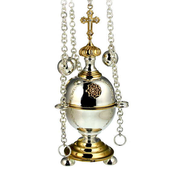 Аккуратное и красивое серебряное кадило с фианитами – отличный подарок священнослужителю.
