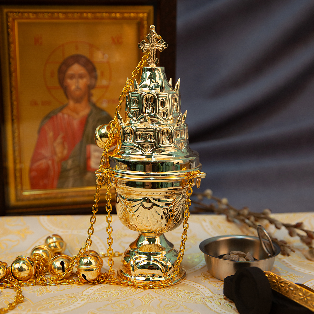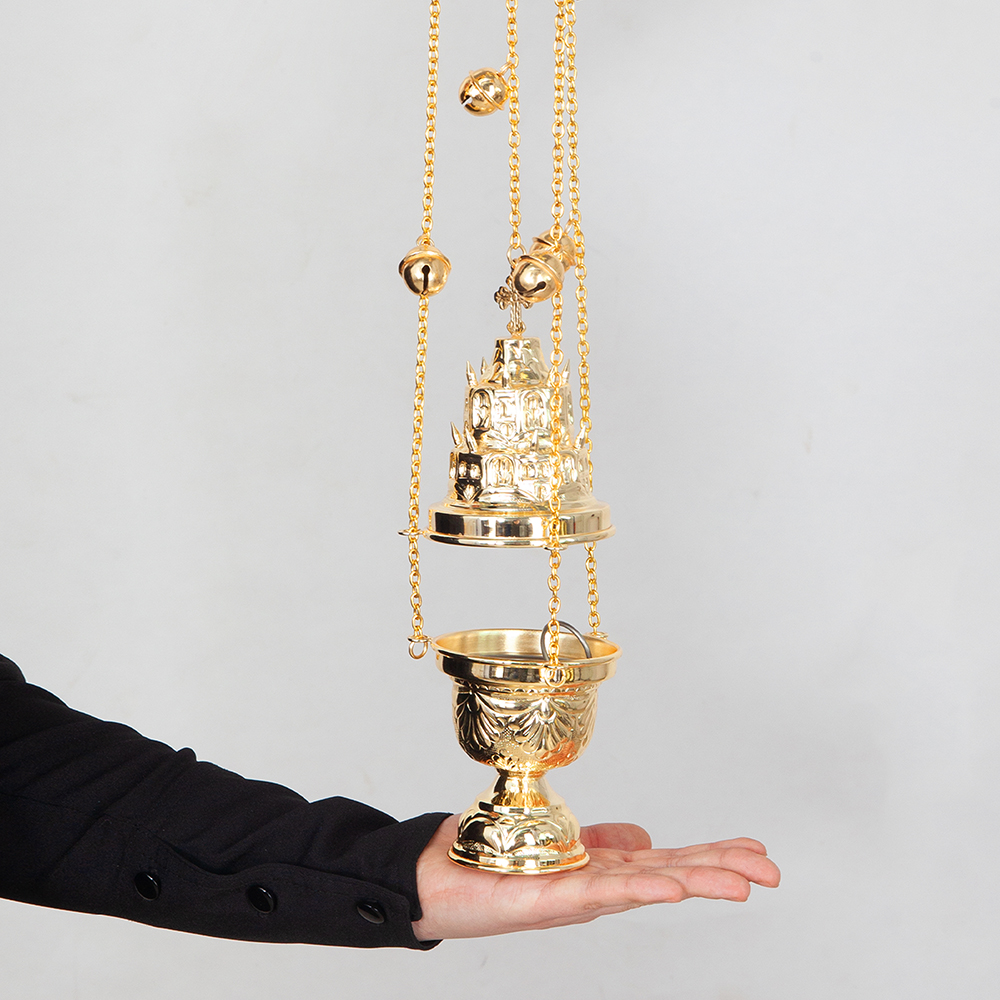 Кадило изготовлено из латунного сплава с последующим покрытием под золото. Двухслойная металлизация повышает износостойкость, обеспечивает защиту от окисления и надолго сохраняет золотой блеск изделия. Устойчивое основание обеспечит безопасное каждение, предотвращая случайное выпадение горящего угля.