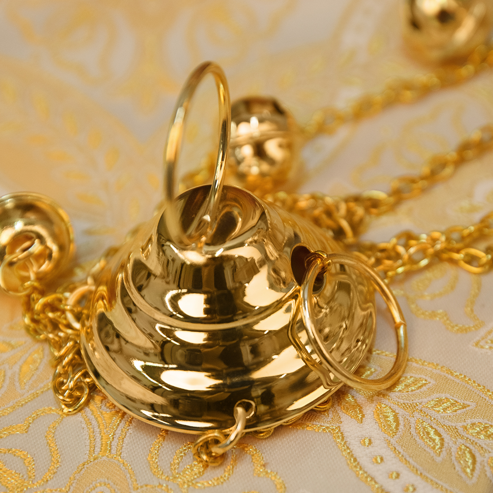 Кадило изготовлено из латунного сплава с последующим покрытием под золото. Двухслойная металлизация повышает износостойкость, обеспечивает защиту от окисления и надолго сохраняет золотой блеск изделия. Благодаря оригинальной форме кадило станет дополнительным украшением богослужения. А его устойчивое основание обеспечит безопасное каждение, предотвращая случайное выпадение горящего угля.