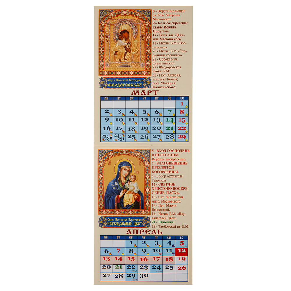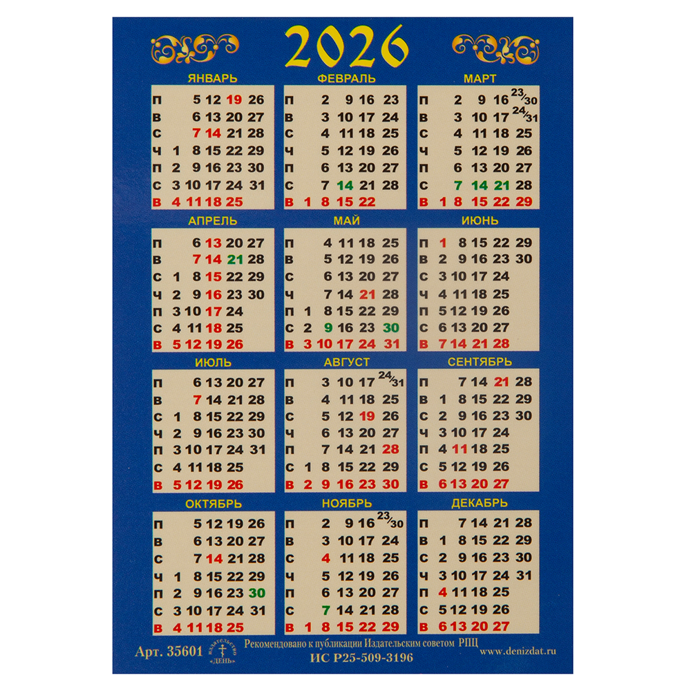 Православный карманный календарь на 2026 год напомнит вам о церковных праздниках и постах, днях особо чтимых святых. Издание изготовлено на глянцевой мелованной бумаге, обложка покрыта ламинирующей пленкой.