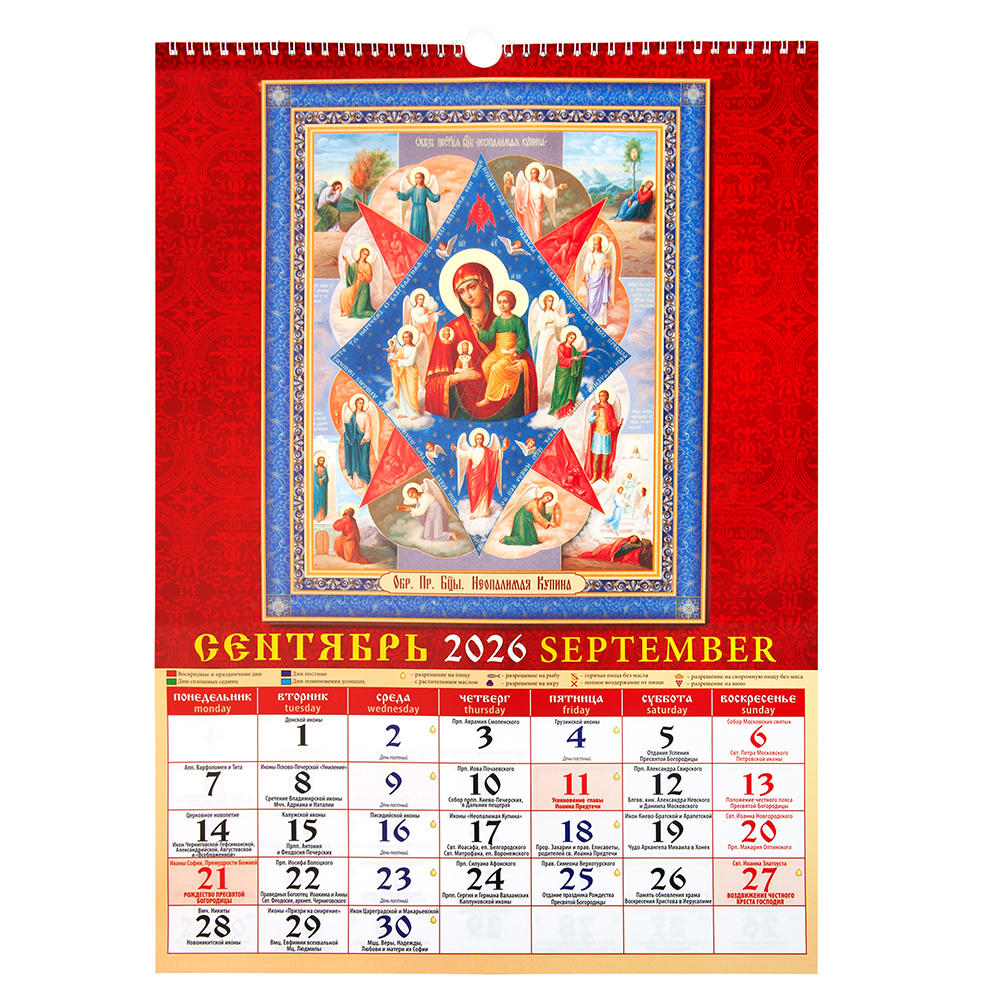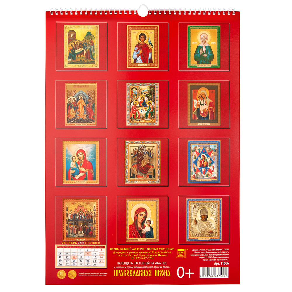 Православный настенный перекидной календарь "Православная икона" на 2026 год на спирали.