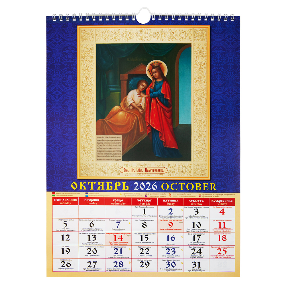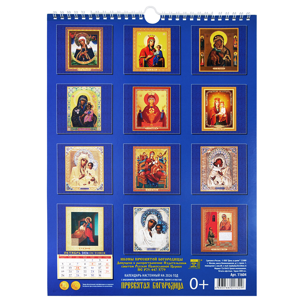 Православный настенный перекидной календарь "Пресвятая Богородица" на 2026 год на спирали.